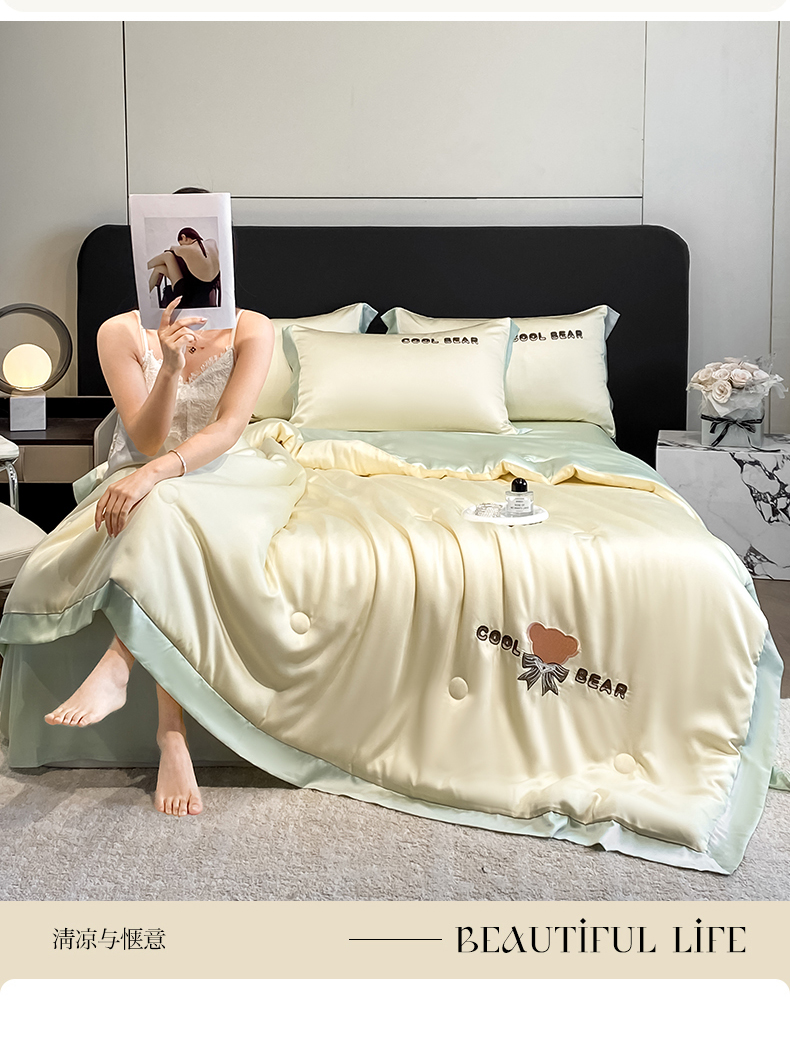 当前位置: 91家纺网 > 商品网购 > 床品套件 > 四件套 > 夏被四件套 > 云棉坊 2026新款水洗真丝冰丝夏被刺绣款-宽边系列 酷尔-奶黄+水果清香