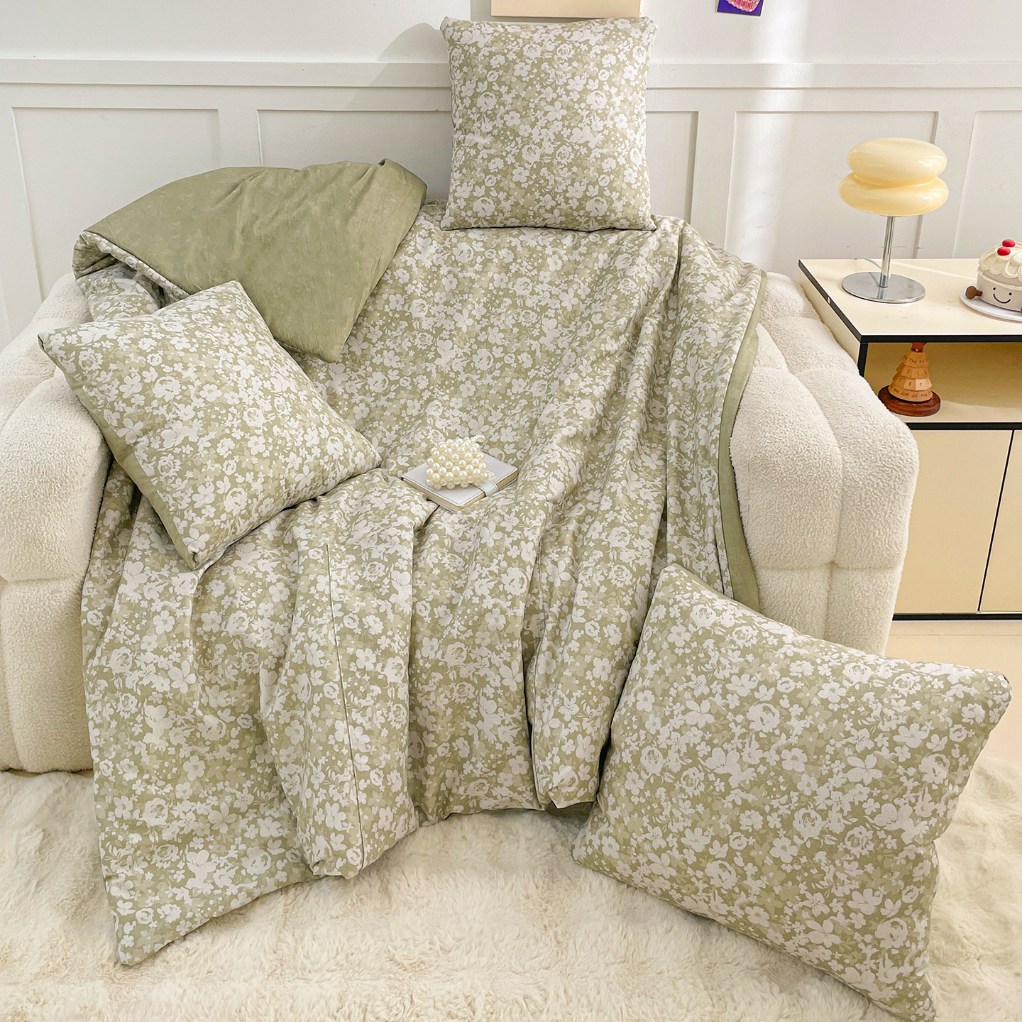 多米家居 2025新款全棉口袋印花抱枕被 森境-绿