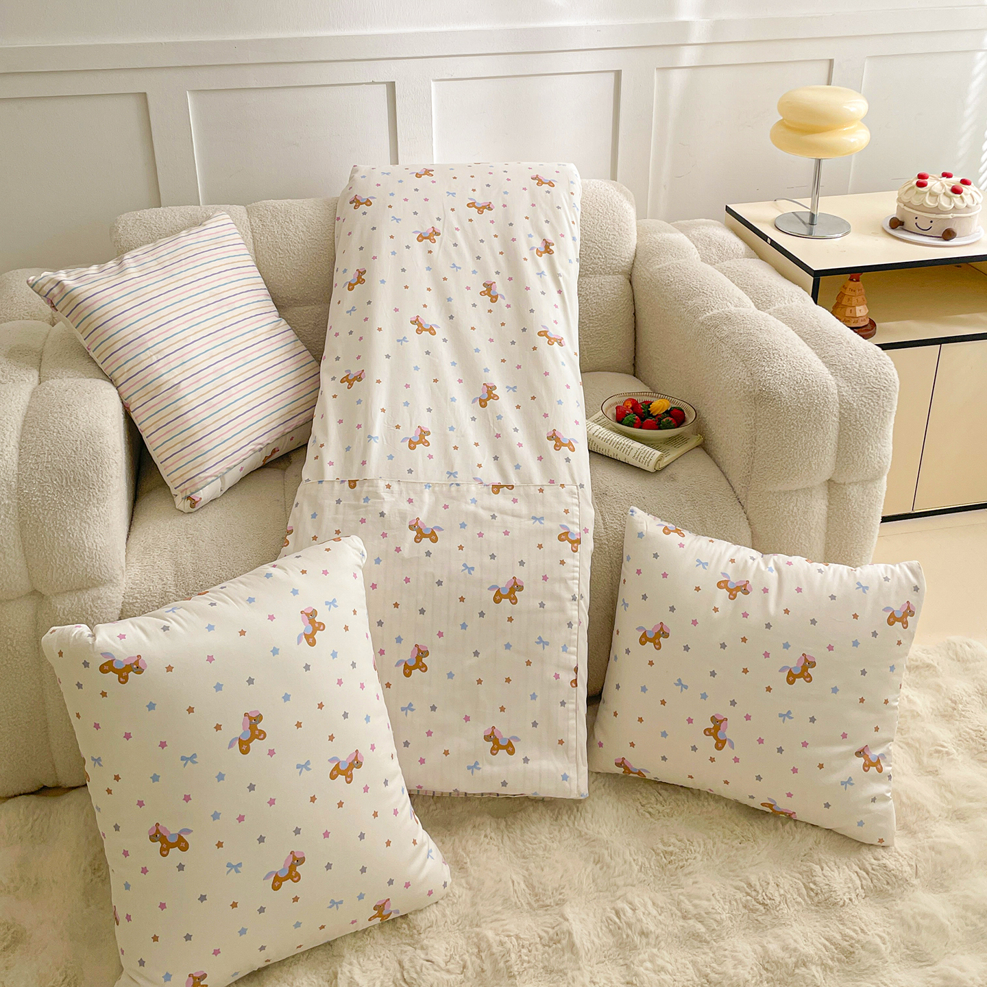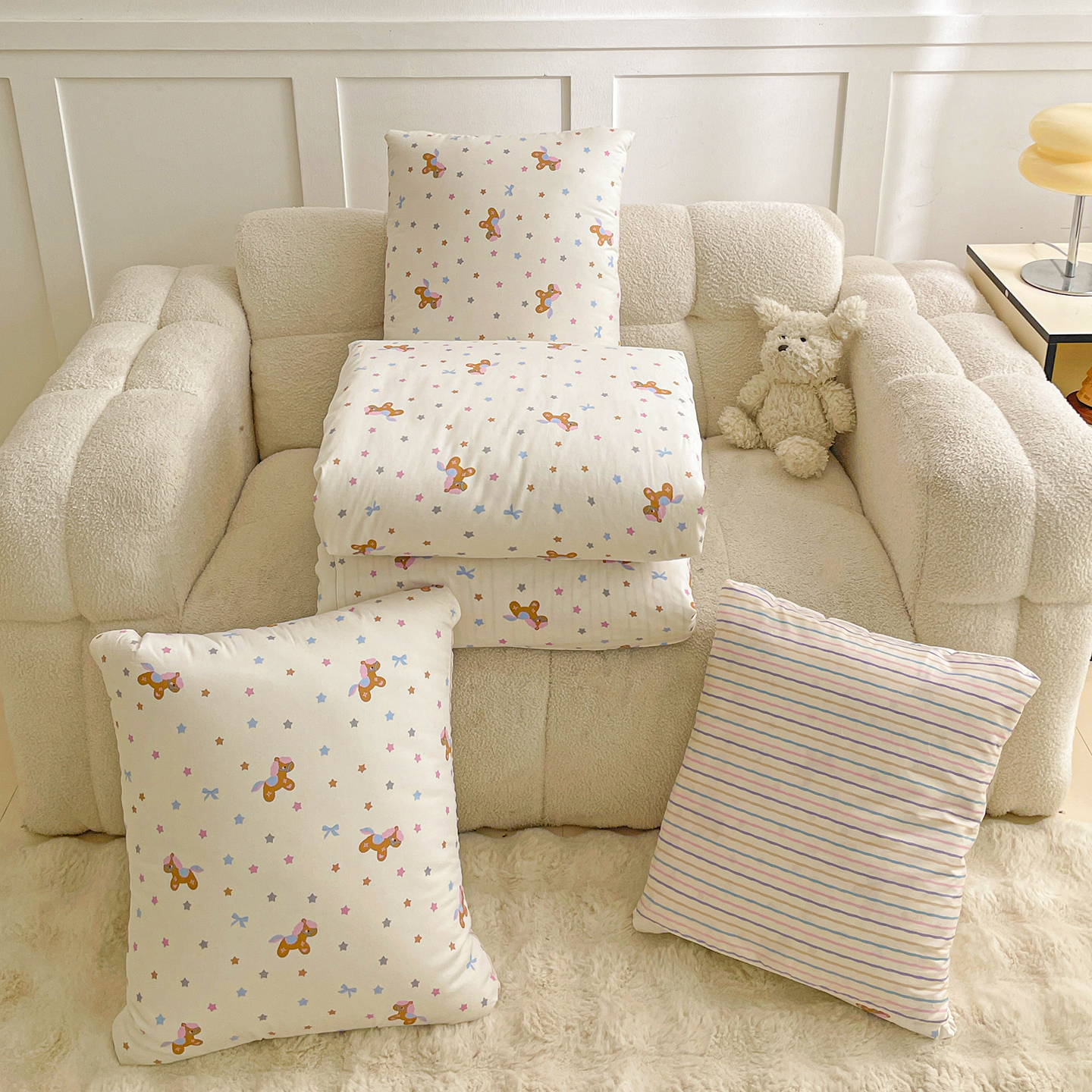 多米家居 2025新款全棉口袋印花抱枕被 彩虹小马
