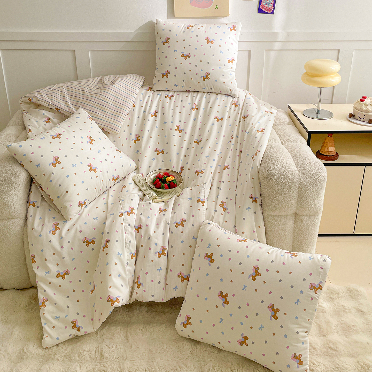 商品名称:多米家居 2025新款全棉口袋印花抱枕被 彩虹小马