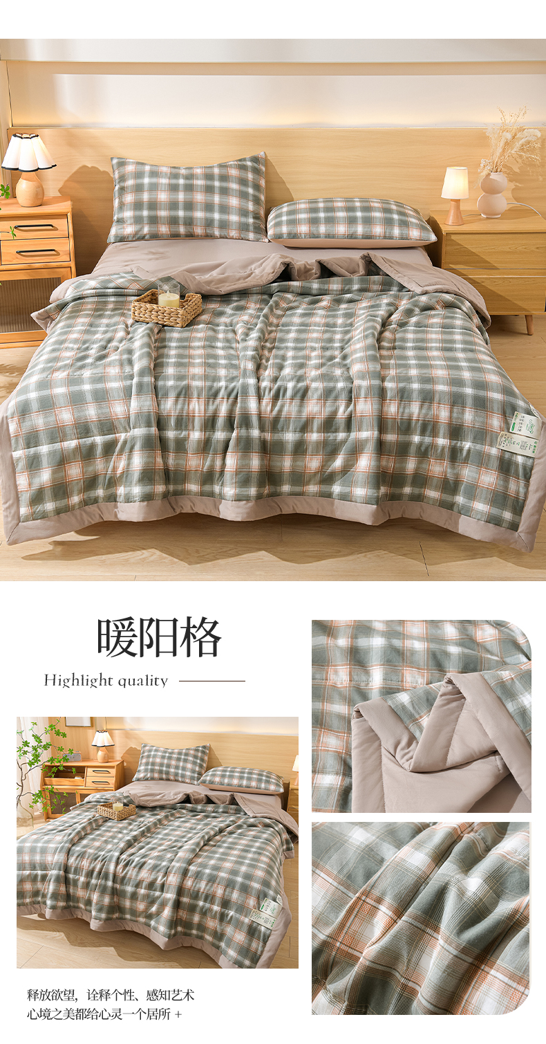 欧朵家纺 2026春夏新款水洗棉新疆棉花被夏凉被空调被 暖阳格