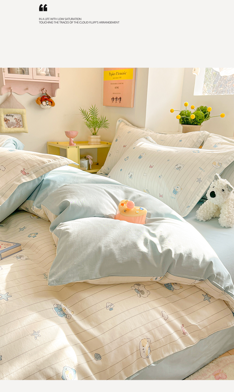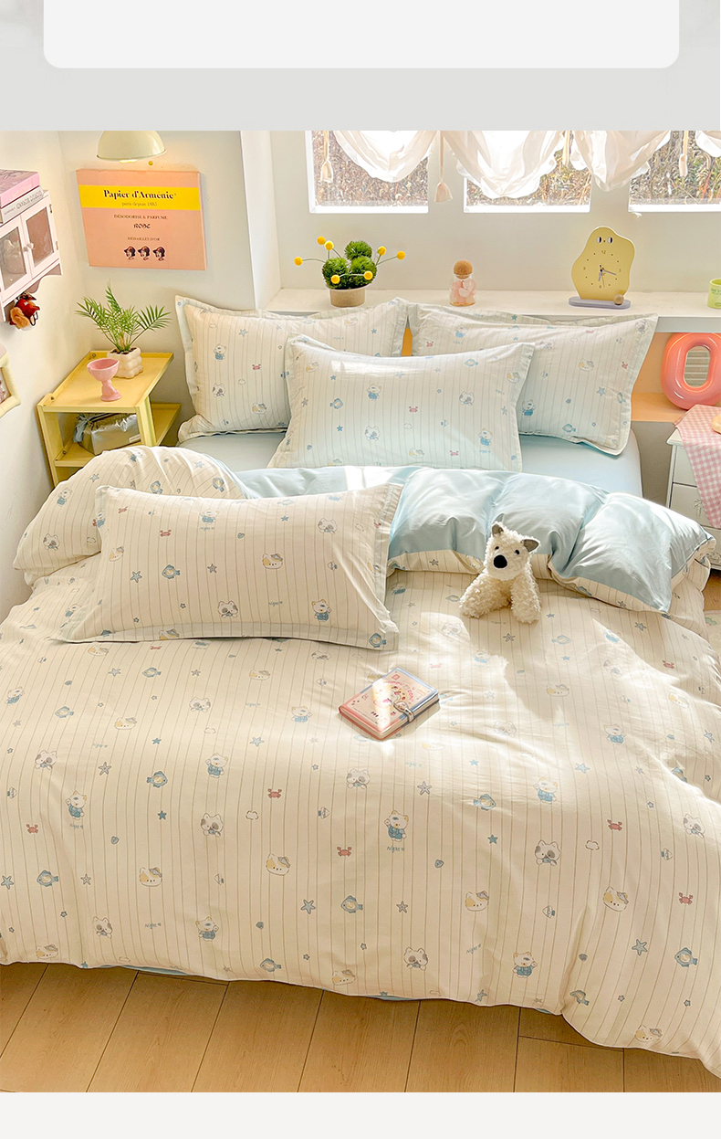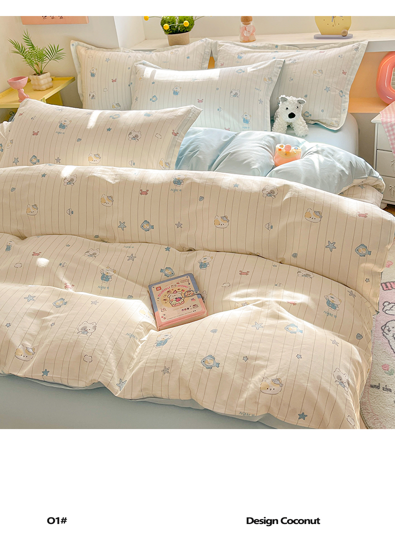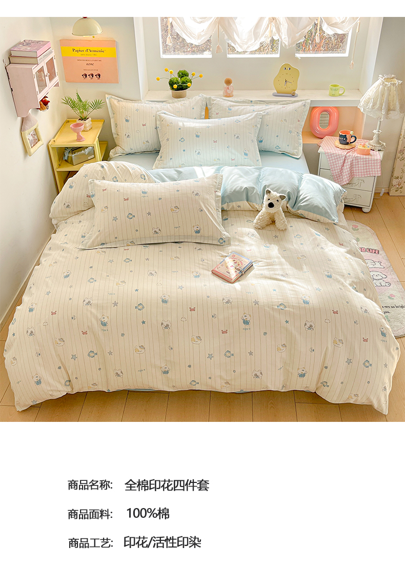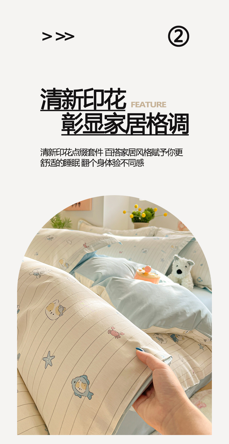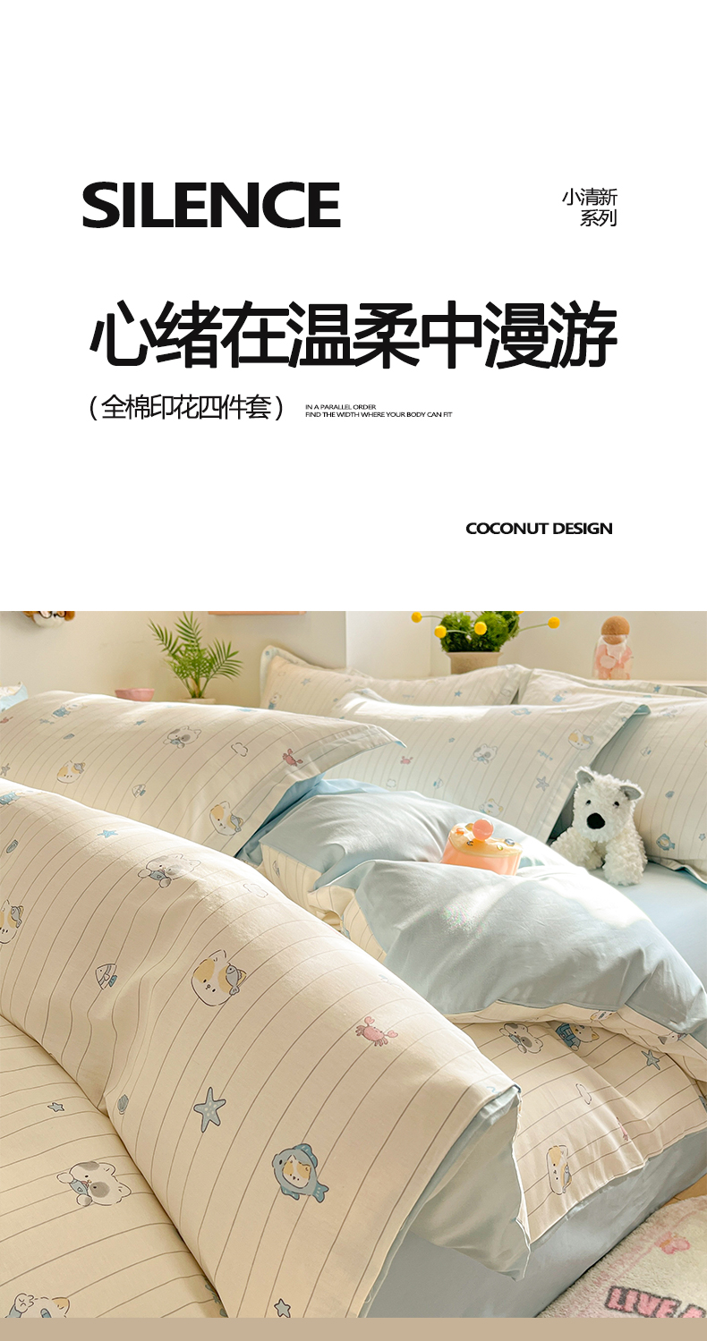 当前位置: 91家纺网 > 商品网购 > 床品套件 > 四件套 > 全棉普通四件套 > 涵宸家纺 2026新款全棉印花小清新四件套 小猫钓鱼