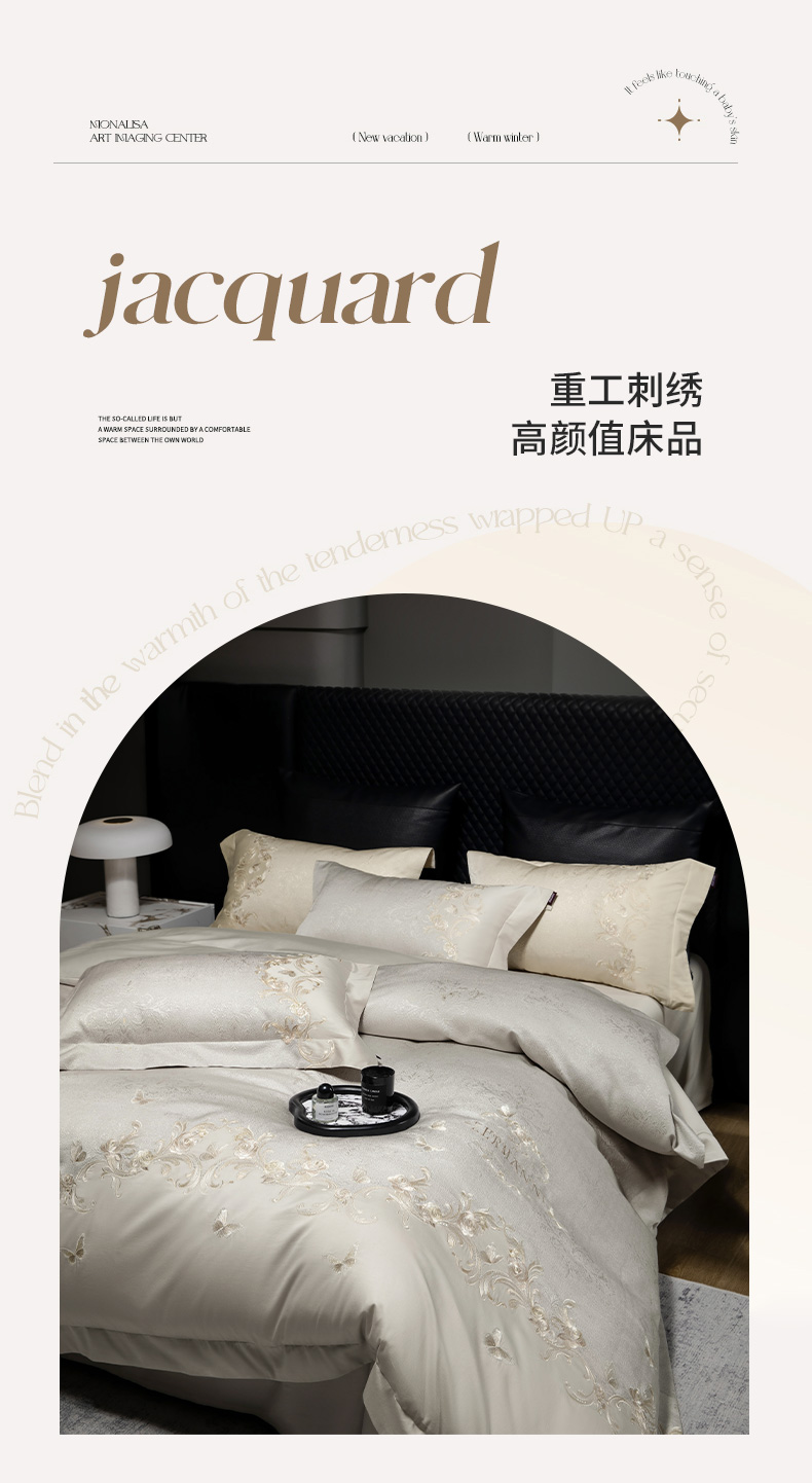 当前位置: 91家纺网 > 商品网购 > 床品套件 > 四件套 > 长绒棉四件套 > (总)爱妮菲家纺 2026高端新品A类100支长绒棉纯棉四件套100全棉厚织提花高档重工刺绣被套床单床笠床上用品