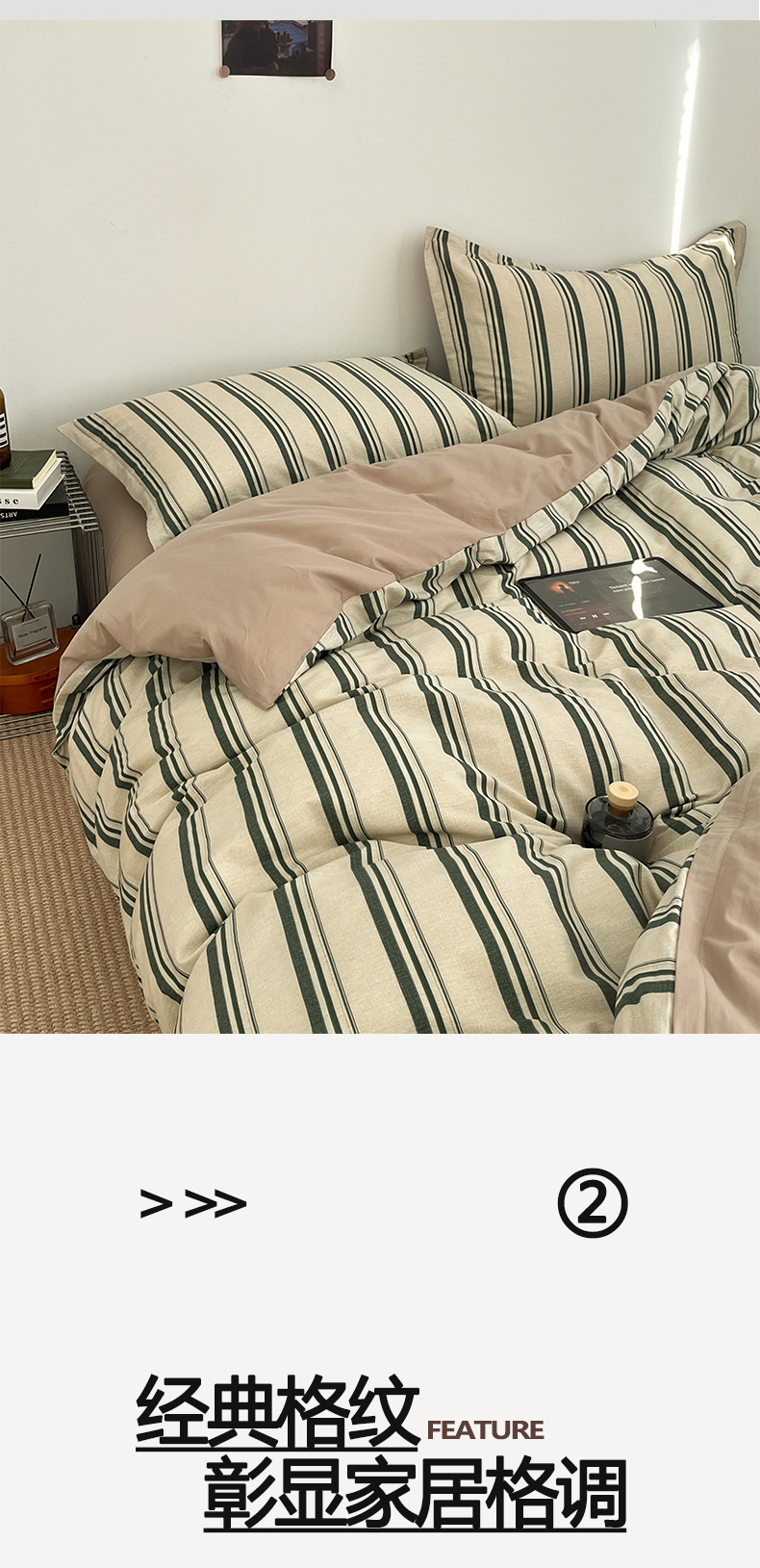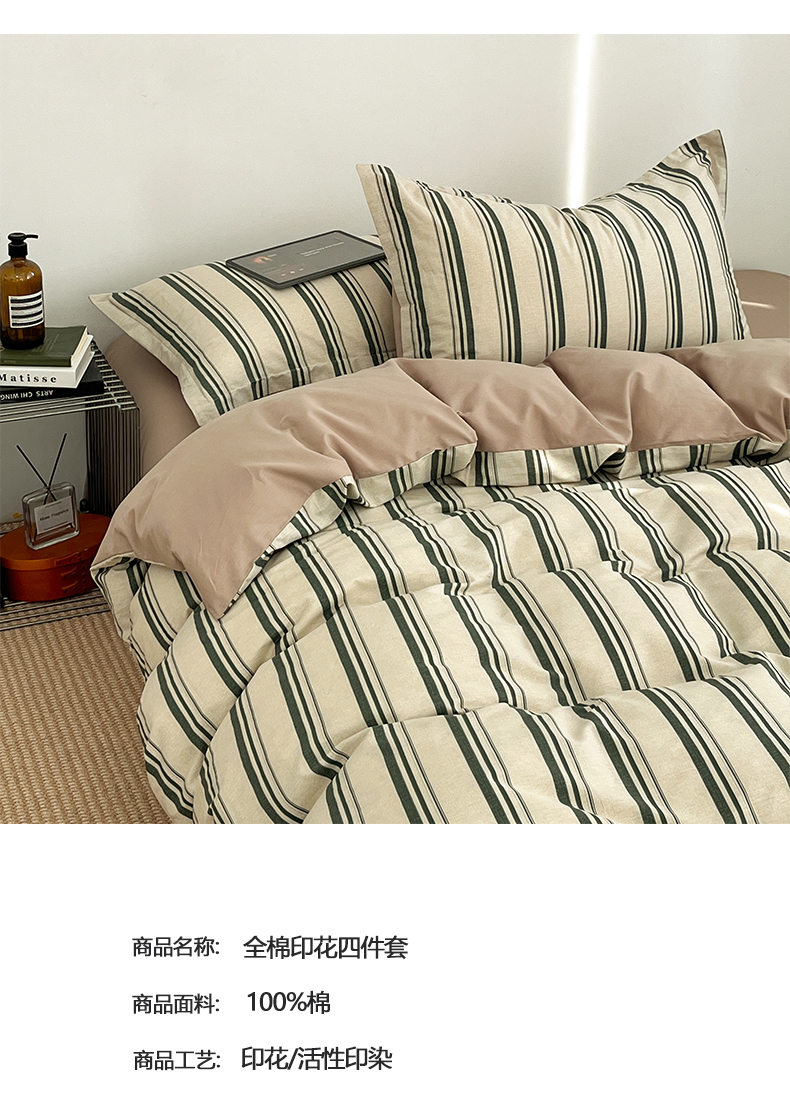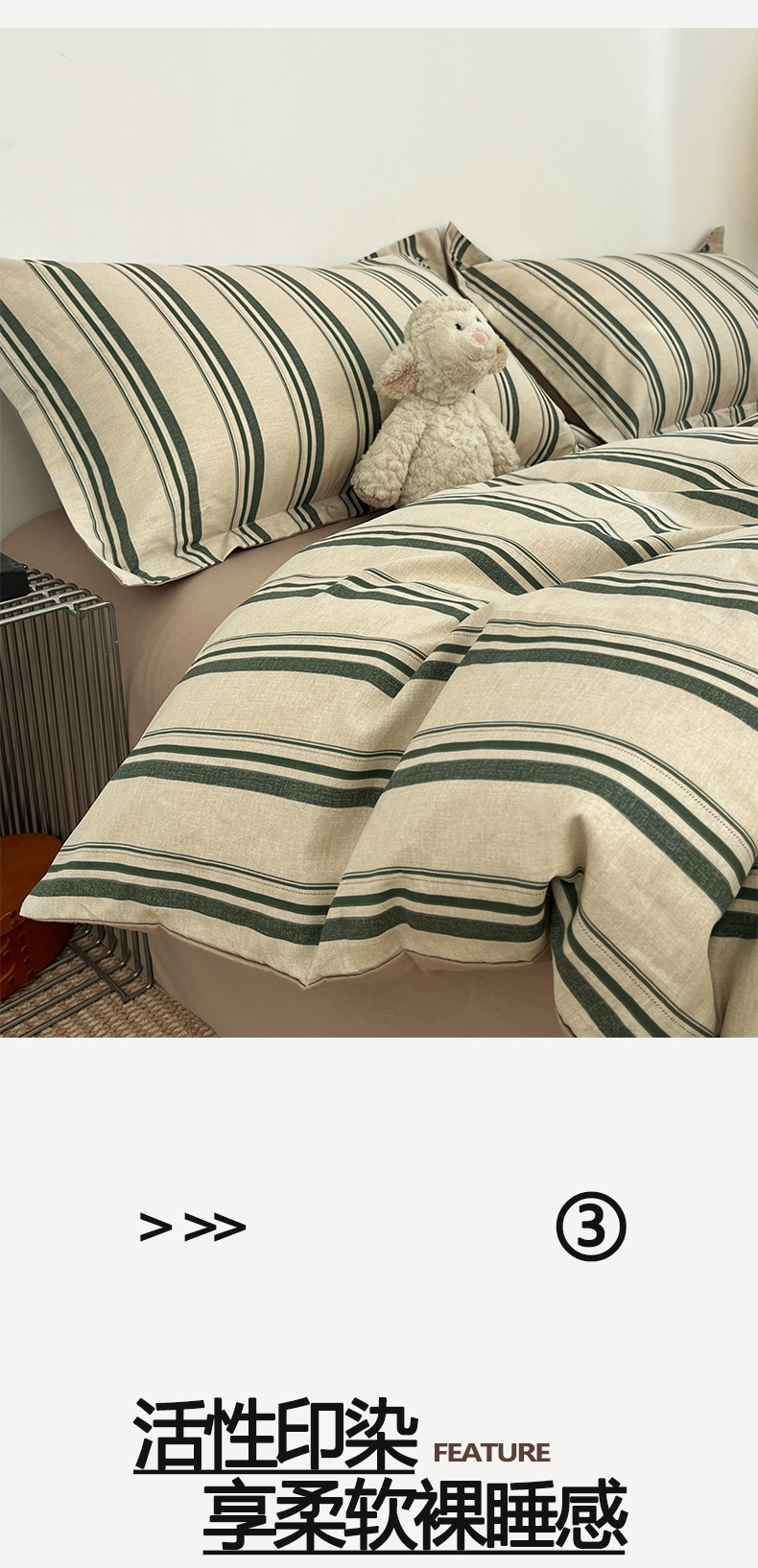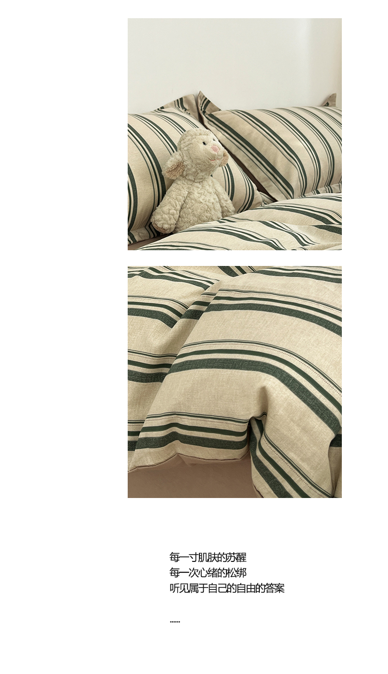 当前位置: 91家纺网 > 商品网购 > 床品套件 > 四件套 > 全棉普通四件套 > 涵宸家纺 2026新款全棉印花简约四件套 复古绿条