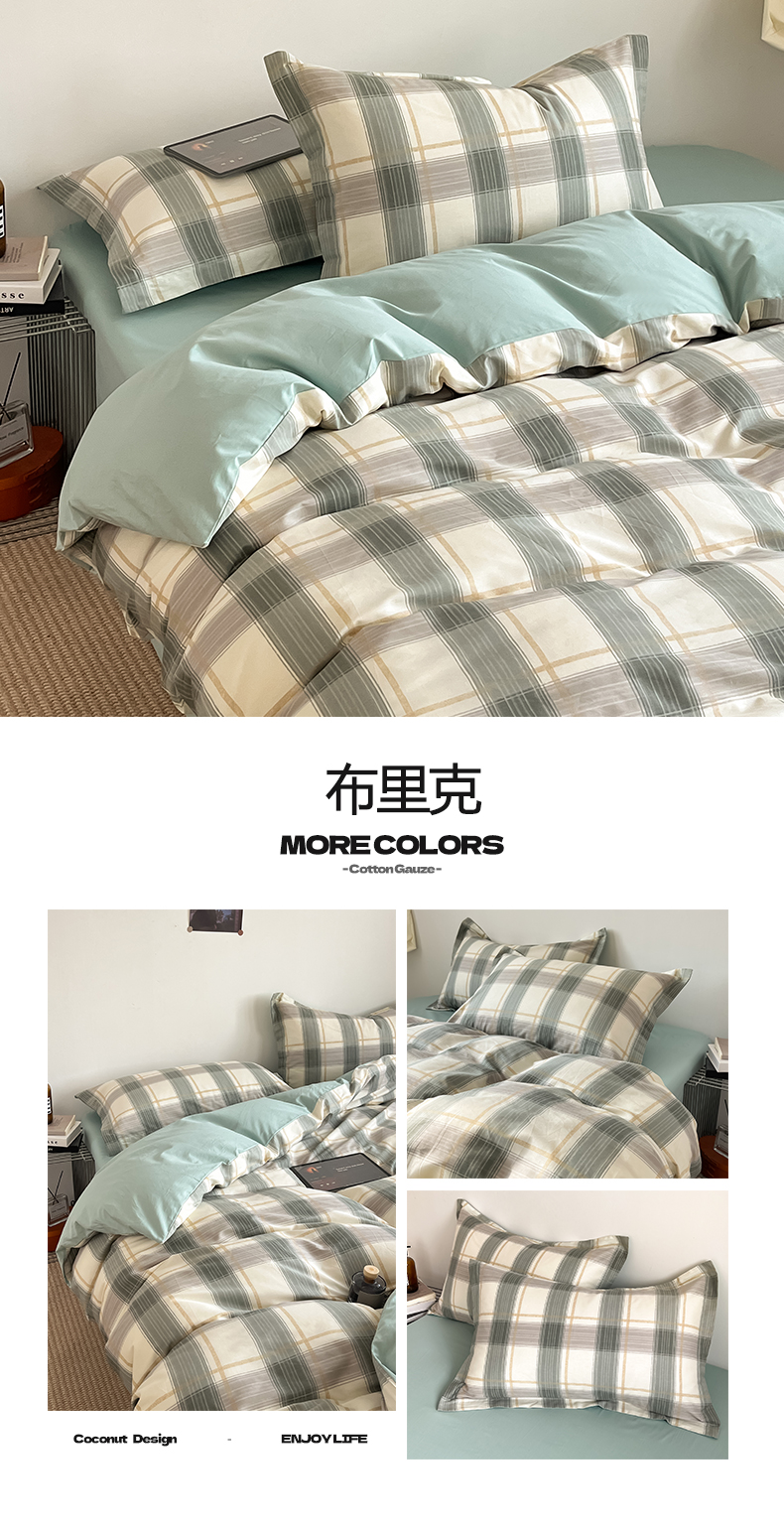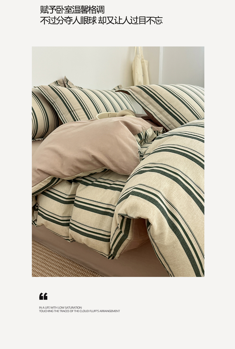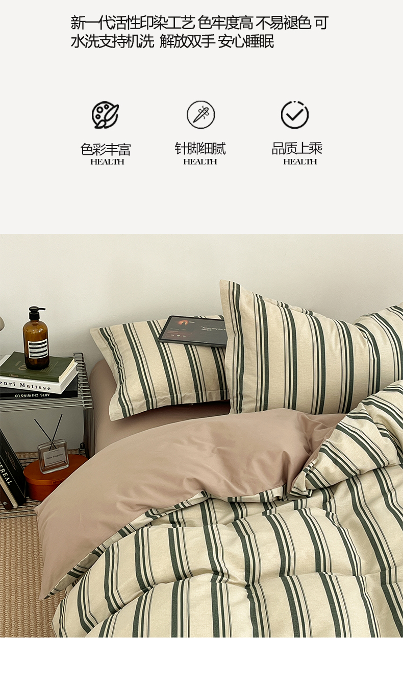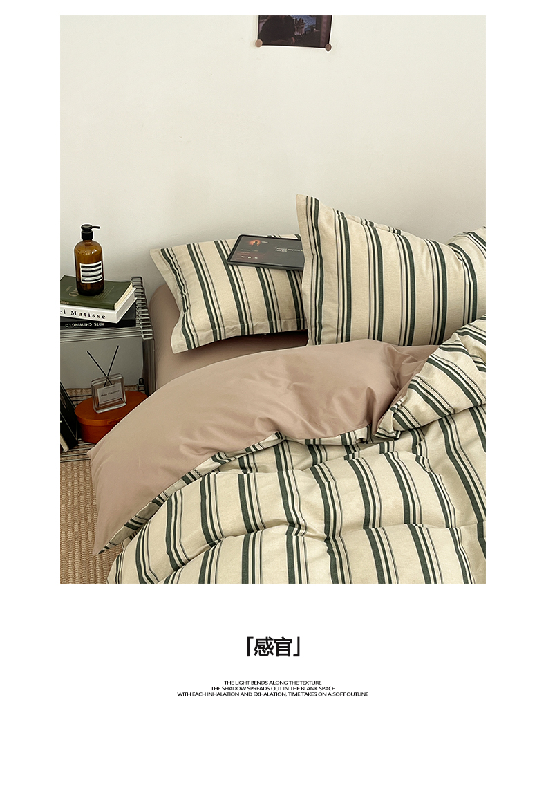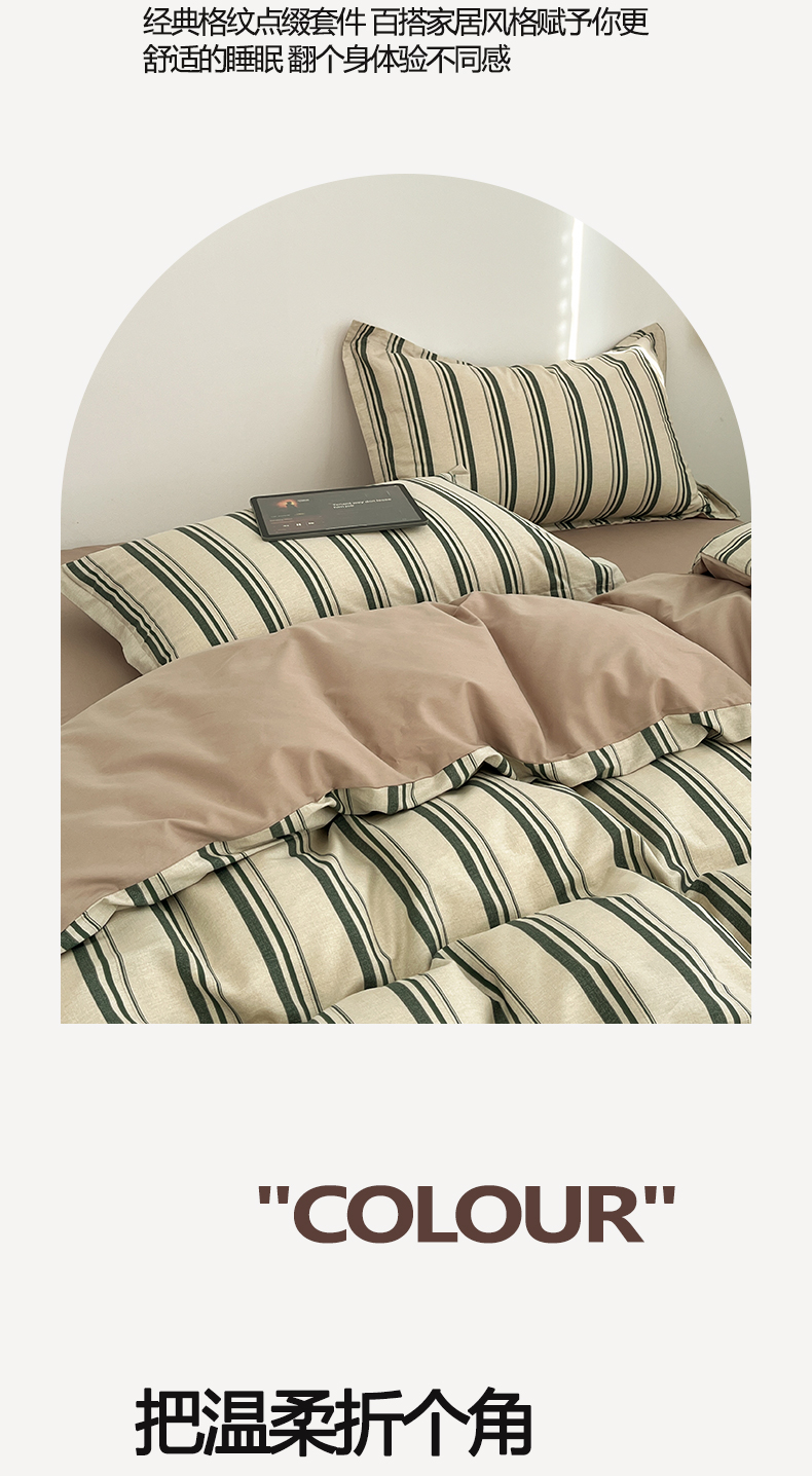 当前位置: 91家纺网 > 商品网购 > 床品套件 > 四件套 > 全棉普通四件套 > 涵宸家纺 2026新款全棉印花简约四件套 复古绿条