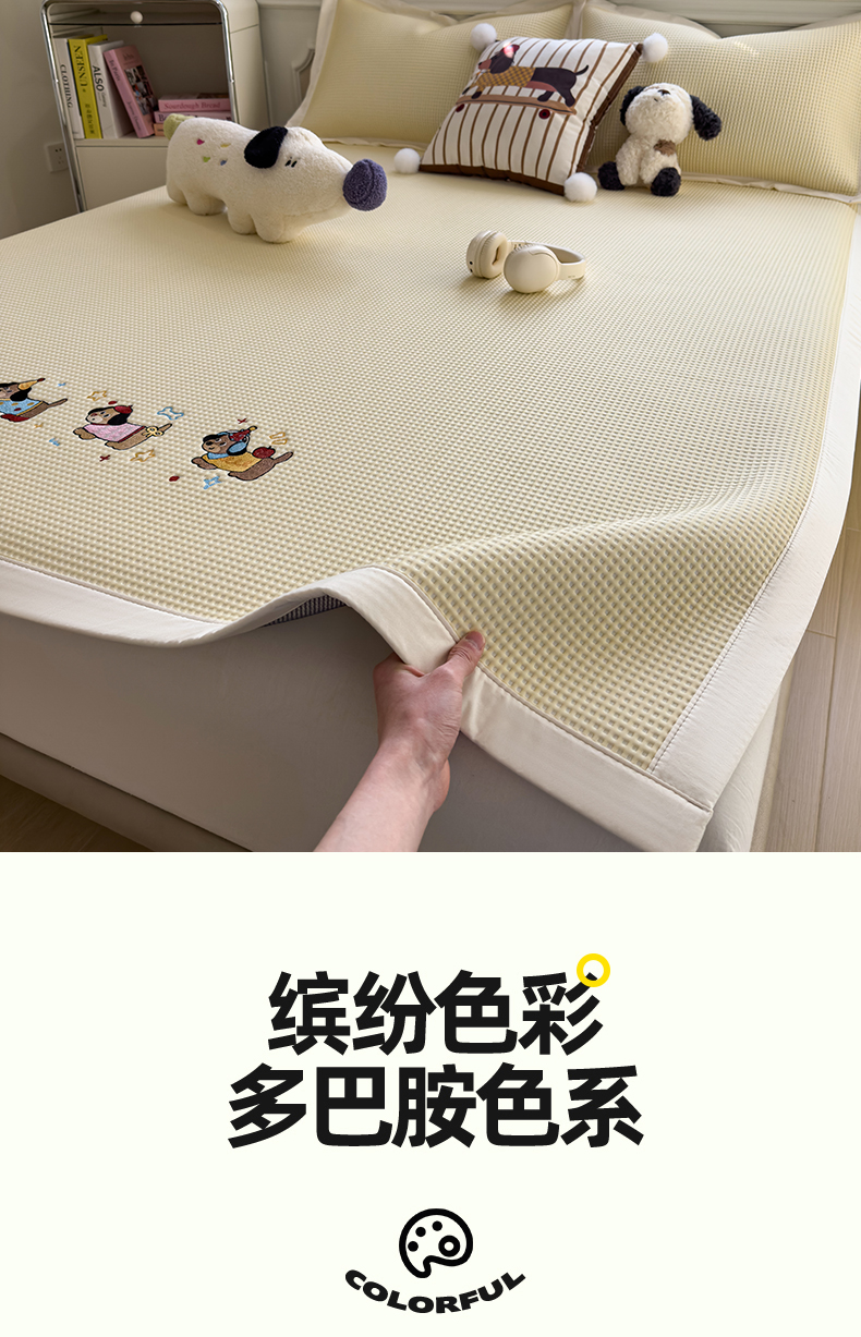 当前位置: 91家纺网 > 商品网购 > 床上用品 > 凉席 > 凉席套件 > 孩子王家纺 2026春夏新款乙纶冰豆豆凉席凉感值过0.21冰丝席-华夫格绣花空调软席凉席席子 躺躺岛-灰 床单款