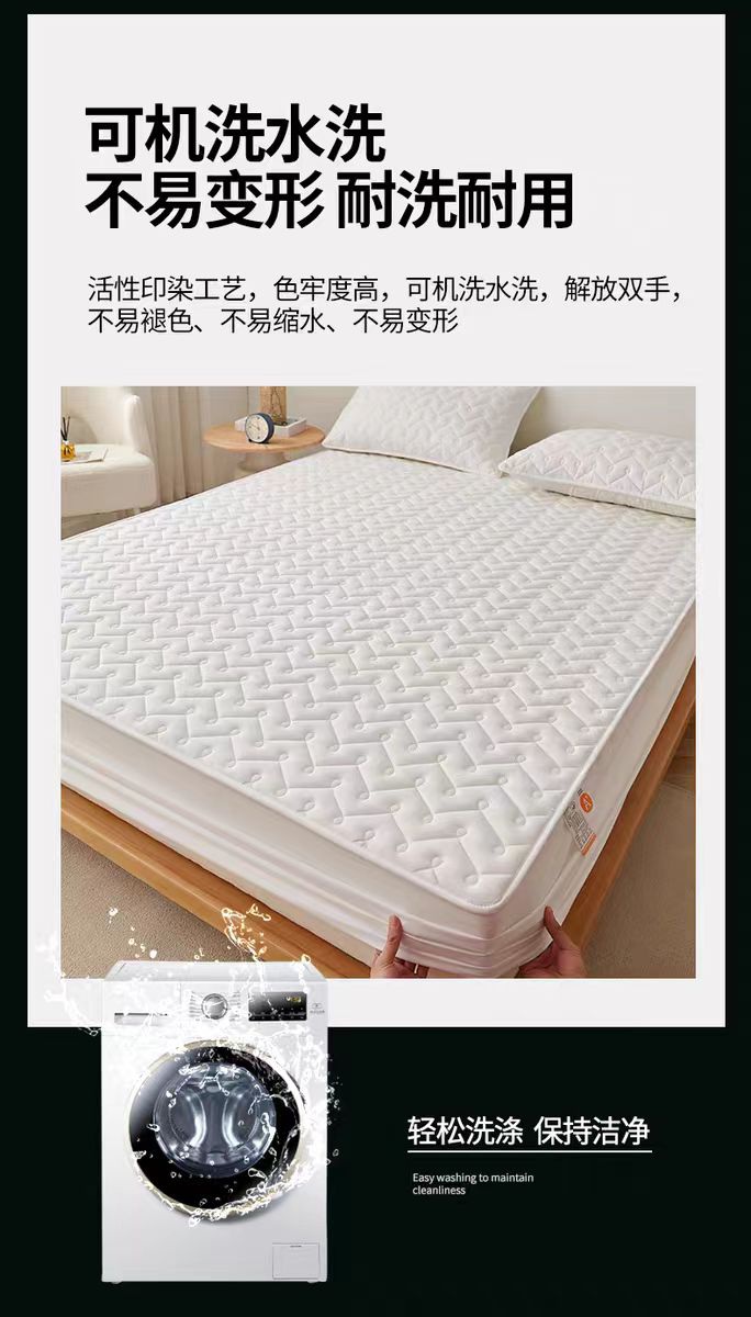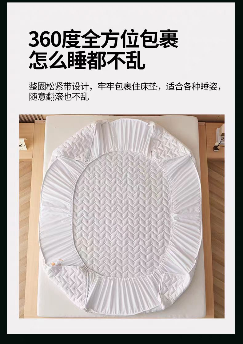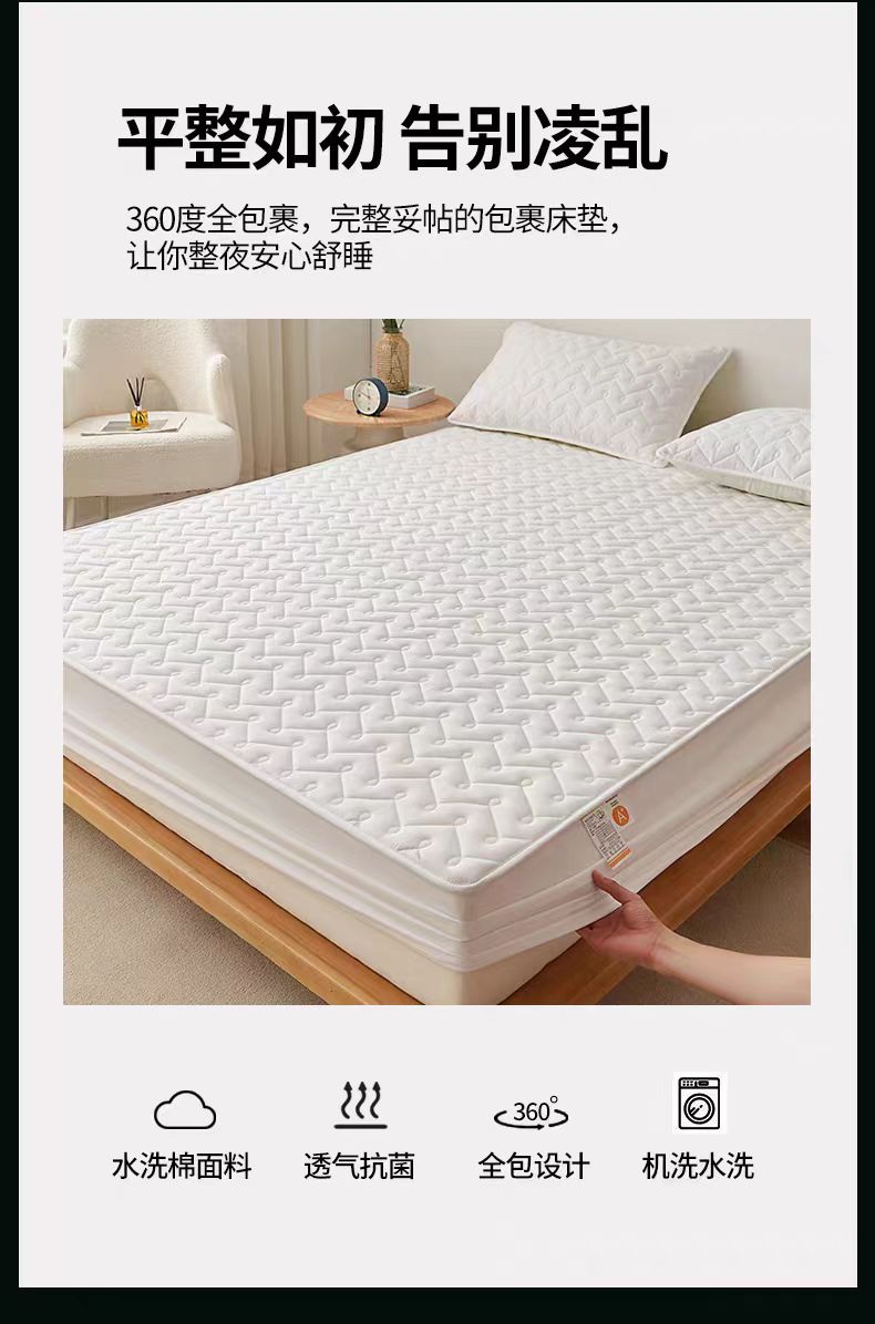 (总)蕾诺家纺 2026新款纯棉全包裹床罩防滑防尘夹棉床笠-波浪纹