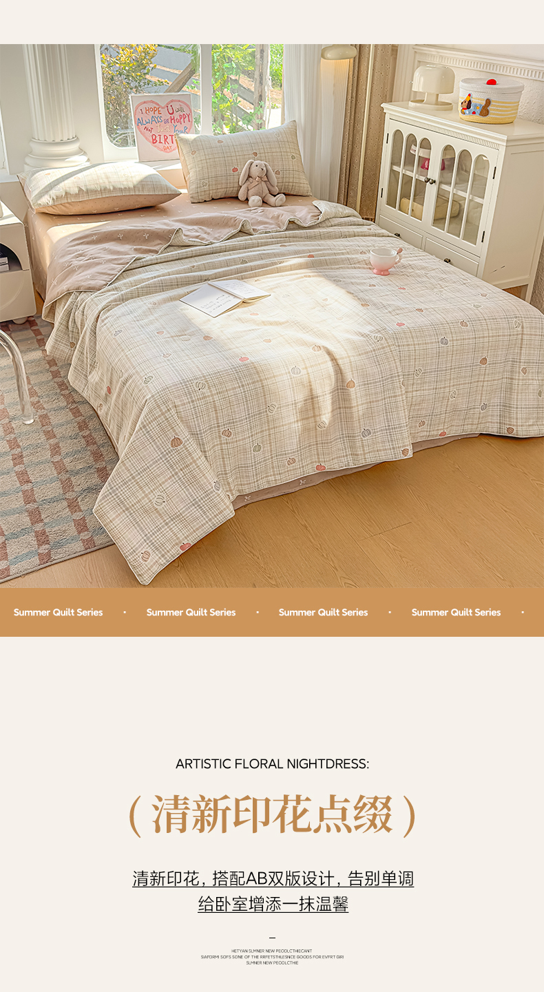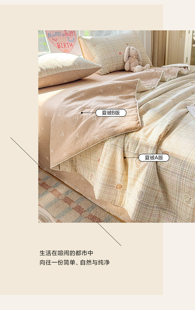 • 91家纺网 家纺一手货源 找家纺 (总)金喜 2026新款A类全棉色织水洗棉夏被夏凉被,低调米,朵拉咖,琥珀粉,焕花灰,柠檬粉,柠檬兰