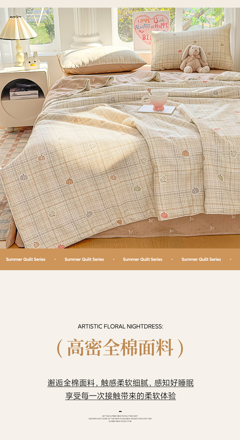 • 91家纺网 家纺一手货源 找家纺 金喜 2026新款100%里外全棉夏被夏被四件套 南瓜派
