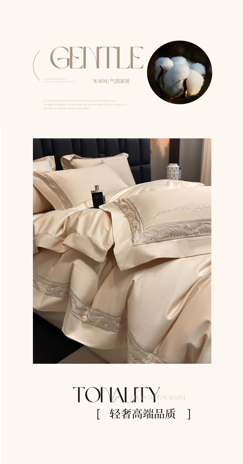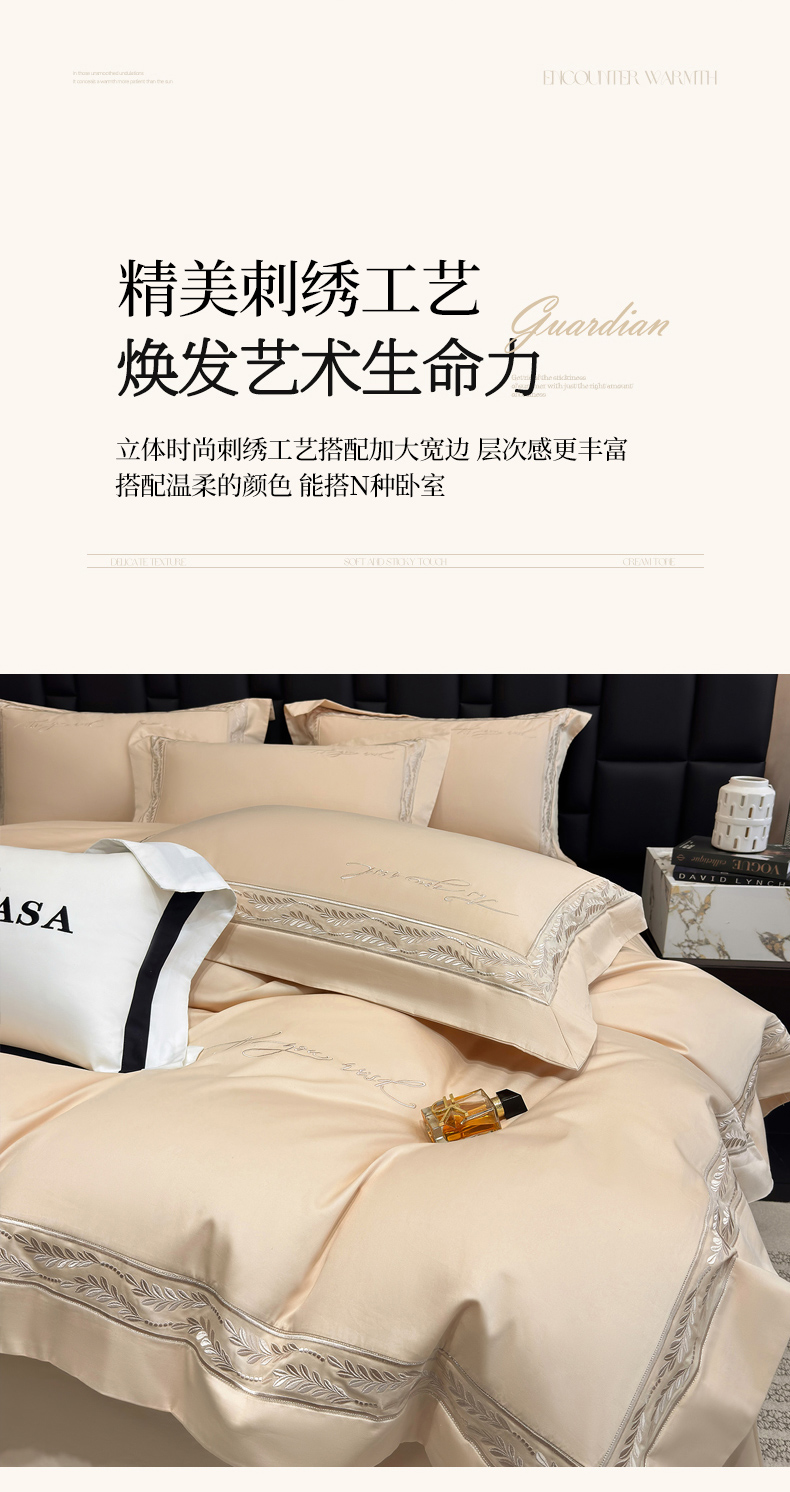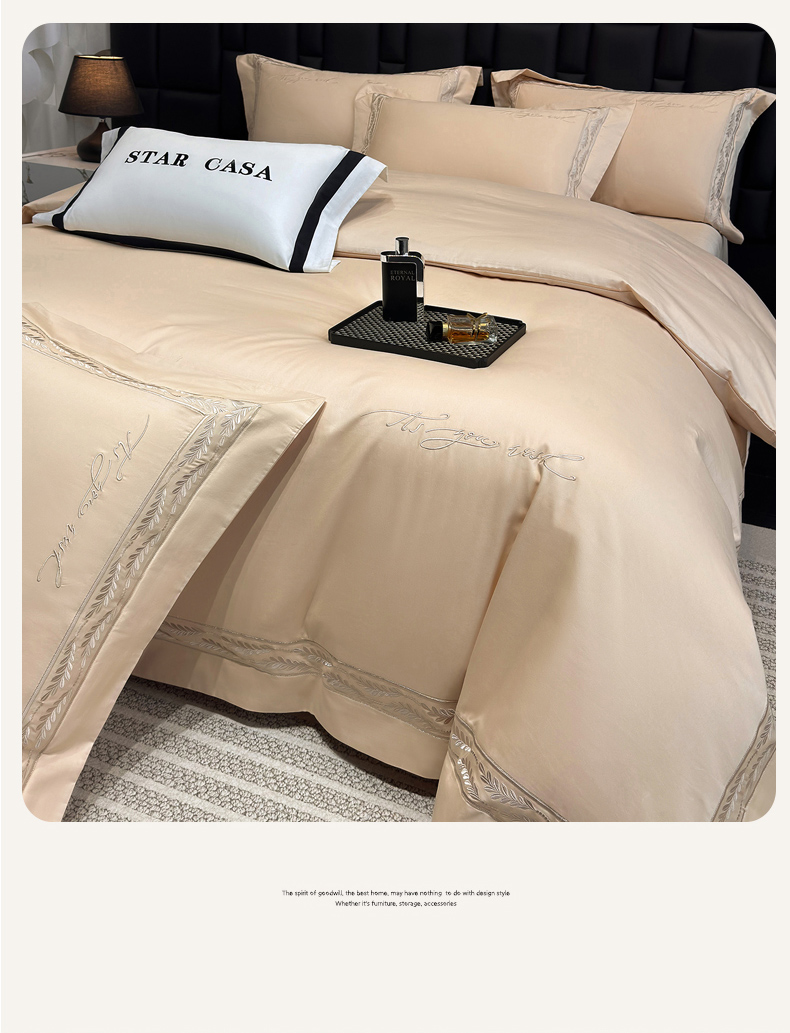 (总)星蕴家纺 2026新款双股长绒棉全棉纯棉刺绣四件套-柏林系列,柏林 贵族白,柏林 星空灰,柏林 云山蓝,柏林 香槟金,柏林 可可粉