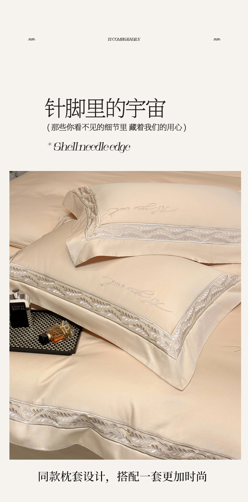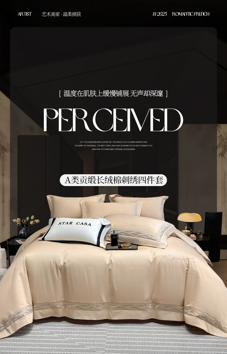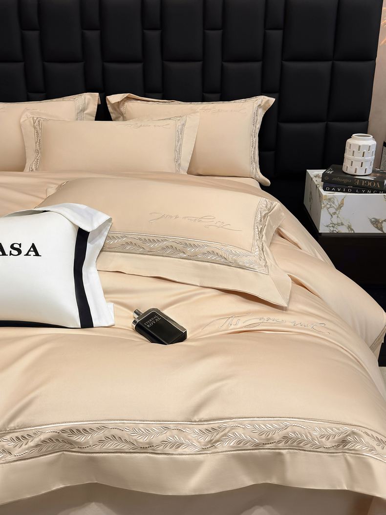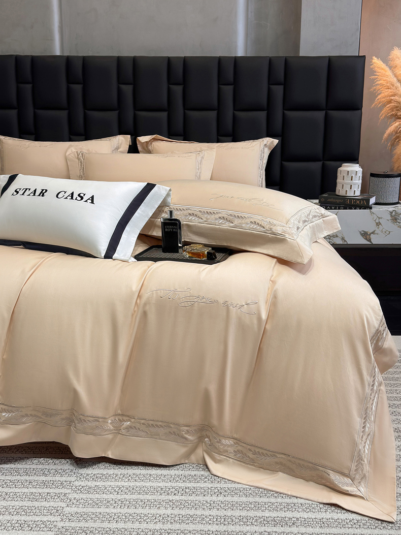 (总)星蕴家纺 2026新款双股长绒棉全棉纯棉刺绣四件套-柏林系列,柏林 贵族白,柏林 星空灰,柏林 云山蓝,柏林 香槟金,柏林 可可粉