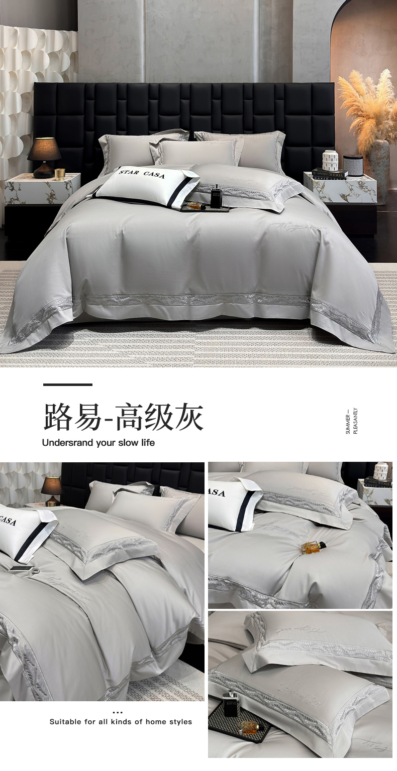 (总)星蕴家纺 2024新款A类新疆全棉刺绣四件套,高级灰,奶昔白,千禧粉,浅香槟