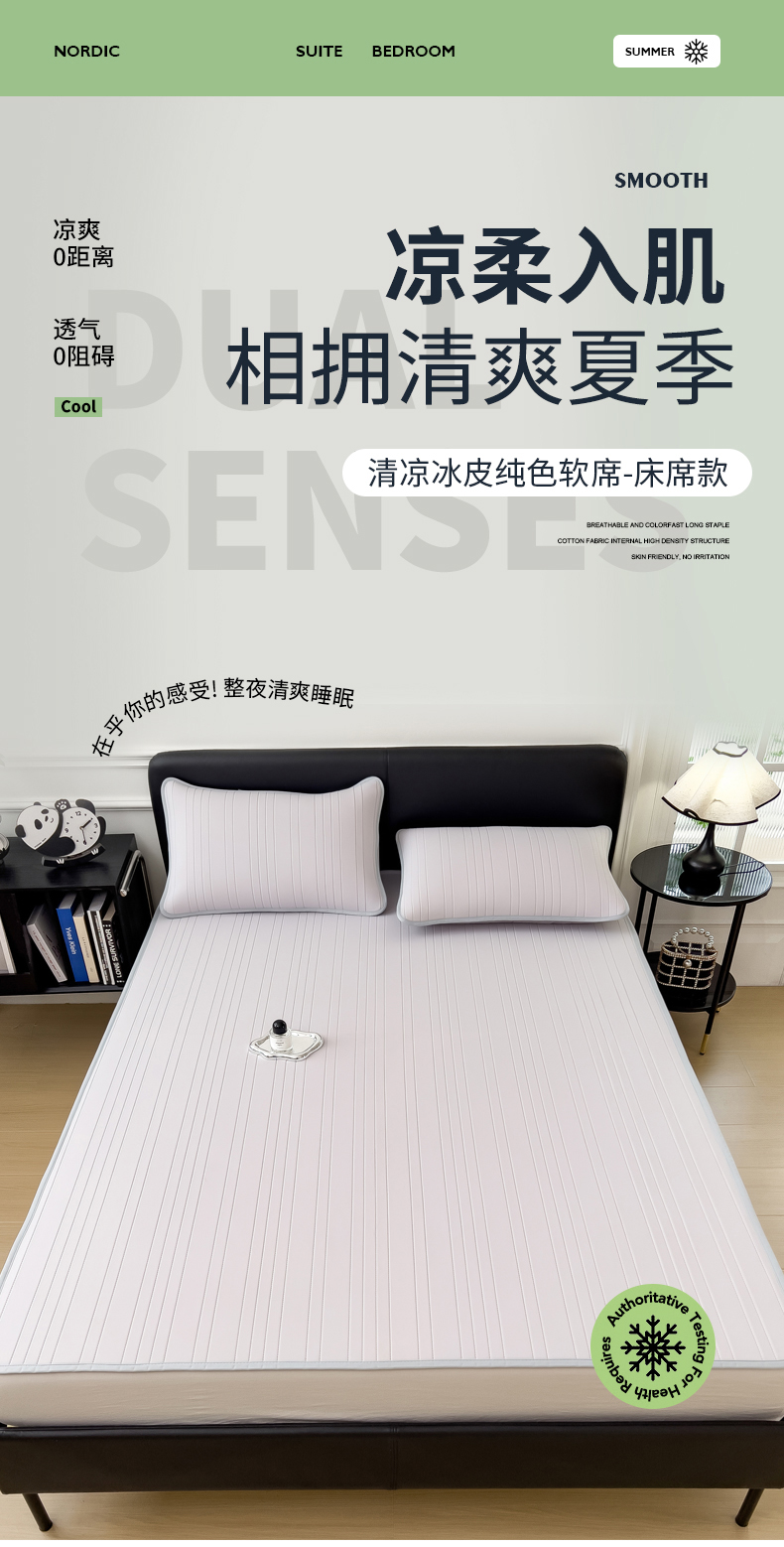 当前位置: 91家纺网 > 商品网购 > 床上用品 > 凉席 > 凉席套件 > 丝羽坊 2026新款云朵凉感纯色小冰皮软凉席-平铺款 组合图仅供展示-不可下单