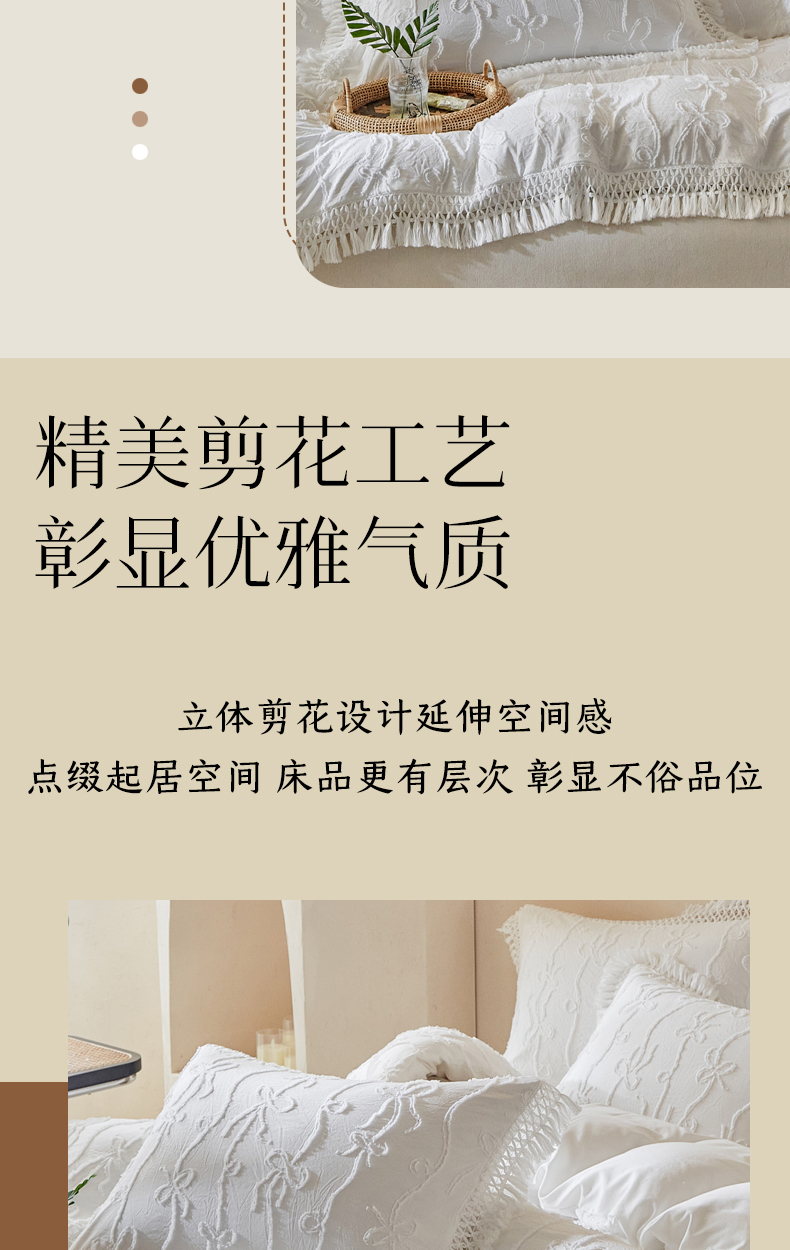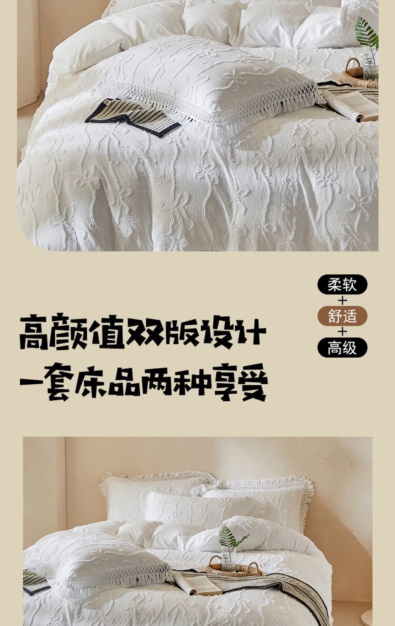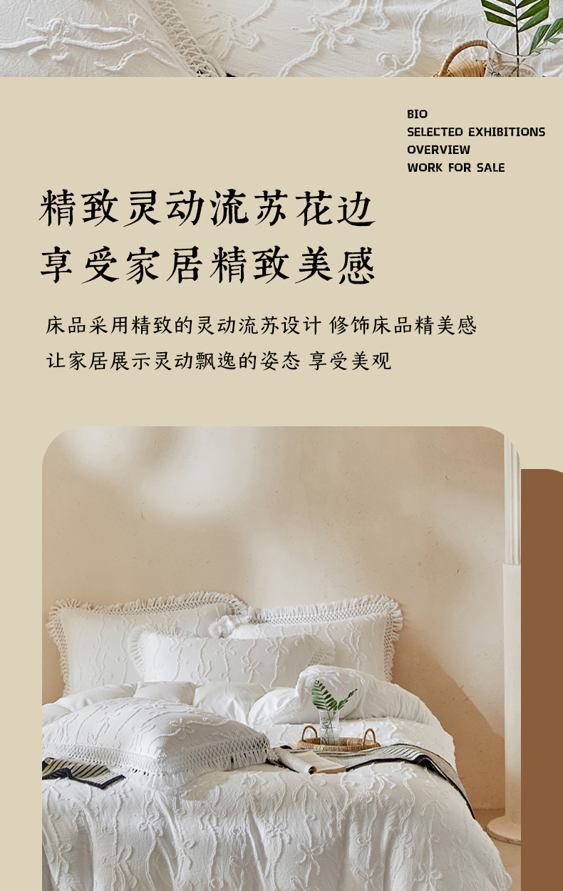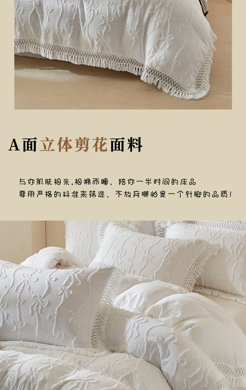 当前位置: 91家纺网 > 商品网购 > 床品套件 > 四件套 > 其它四件套 > 缘生活 2026春夏新款民宿立体剪花蝴蝶结流苏四件套 剪花竖条纹蝴蝶结流苏本白