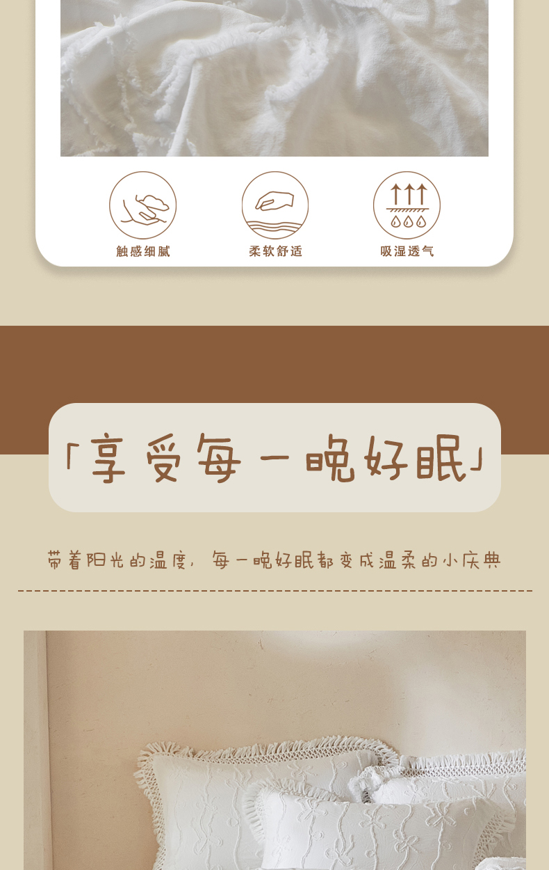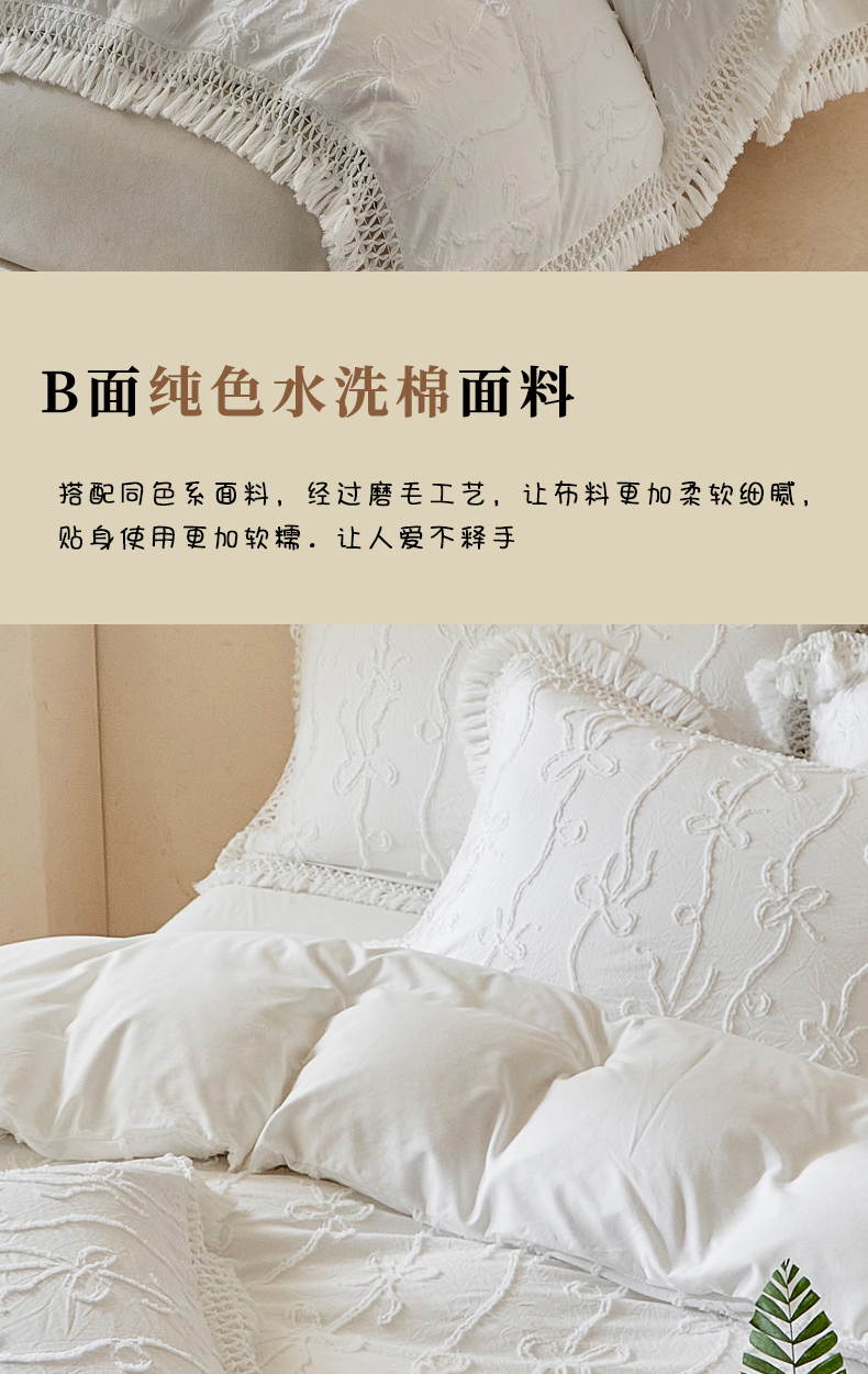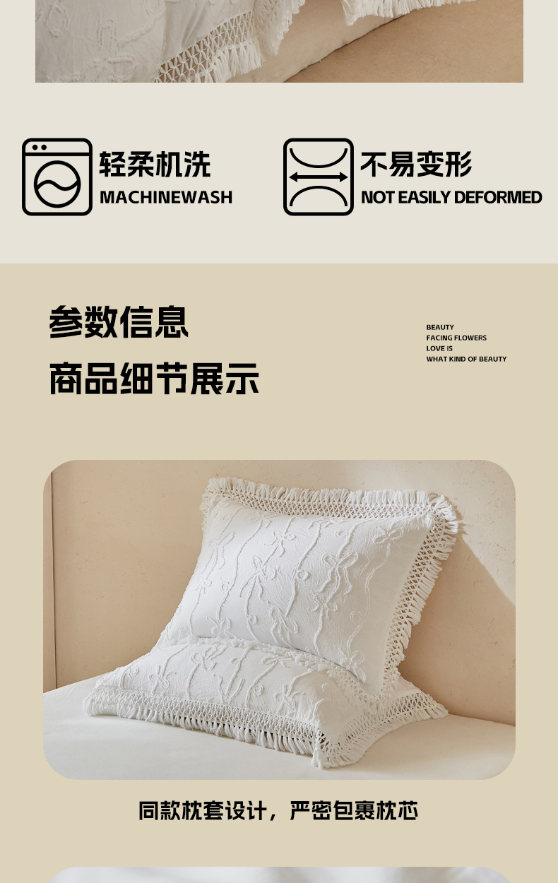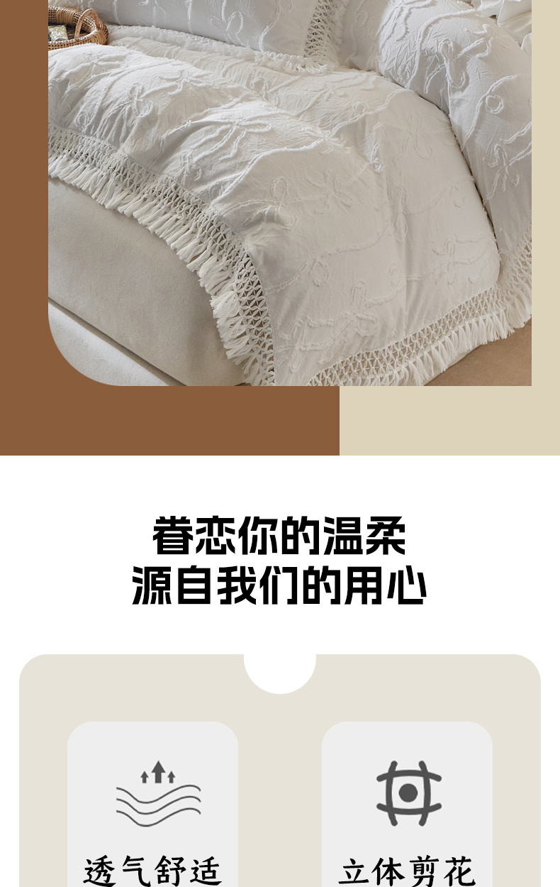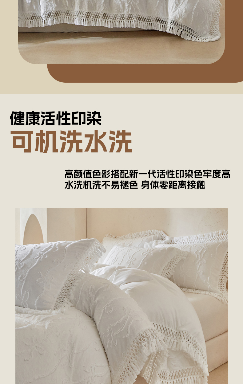 当前位置: 91家纺网 > 商品网购 > 床品套件 > 四件套 > 其它四件套 > 缘生活 2026春夏新款民宿立体剪花蝴蝶结流苏四件套 剪花竖条纹蝴蝶结流苏本白