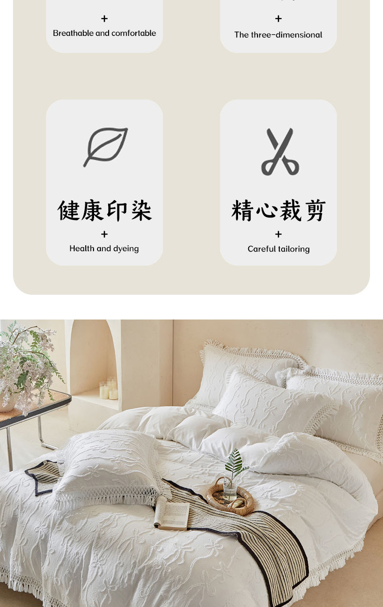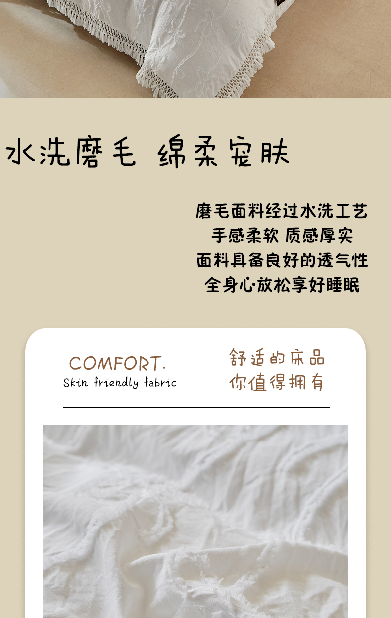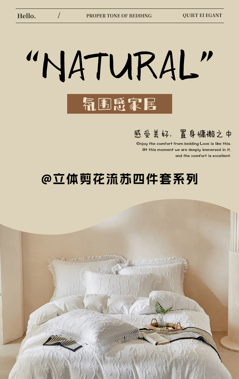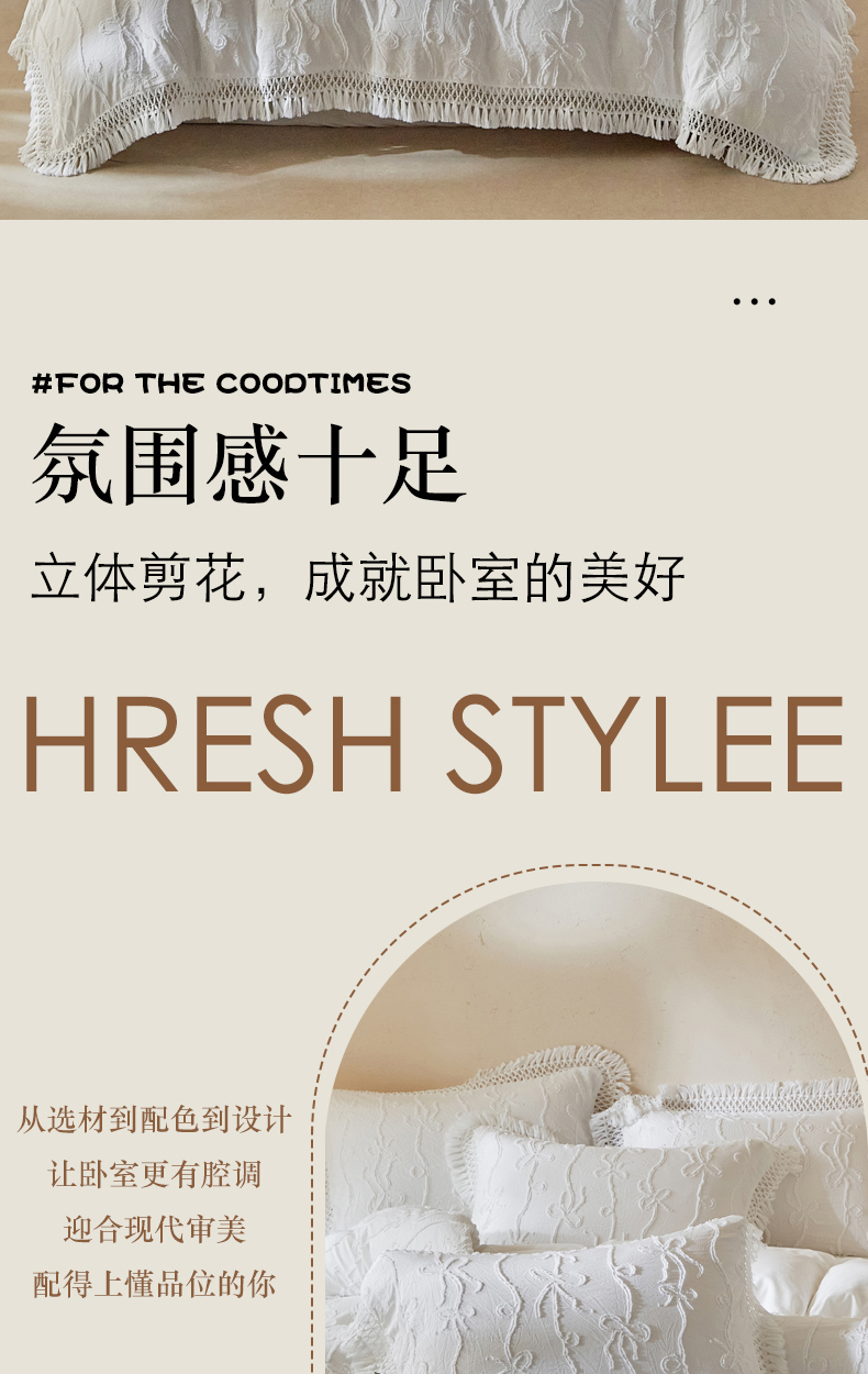 当前位置: 91家纺网 > 商品网购 > 床品套件 > 四件套 > 其它四件套 > 缘生活 2026春夏新款民宿立体剪花蝴蝶结流苏四件套 剪花竖条纹蝴蝶结流苏本白