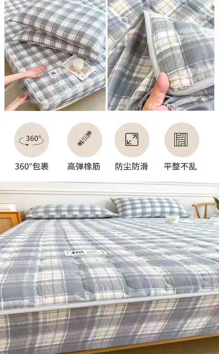 (总)蕾诺家纺 2026新款色织水洗棉棉花夹棉床笠保护套,简兮灰,简兮蓝,橘绿条,青春浅蓝,三分灰格,时光绿,威尼斯粉,威尼斯绿,心语-咖,心语-绿,心语蓝,烟雨灰