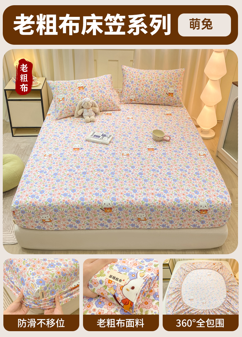• 91家纺网 家纺一手货源 找家纺 (总)优品惠 2026新款老粗布床笠凉席席子空调软席单品床垫保护套三件套,格子萌马,kt粉,kt蓝,波西米亚,豆蔻,桔灰条纹,可爱星星人,蓝大格,蓝灰卷花,林间小兔,萌兔,青枝漫语,条纹,小南瓜,星星,约定,紫色花语