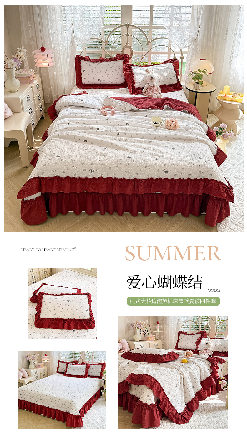 韩约家纺 2026新款法式大花边泡芙棉床盖款夏被夏凉被空调被四件套 蝴蝶结