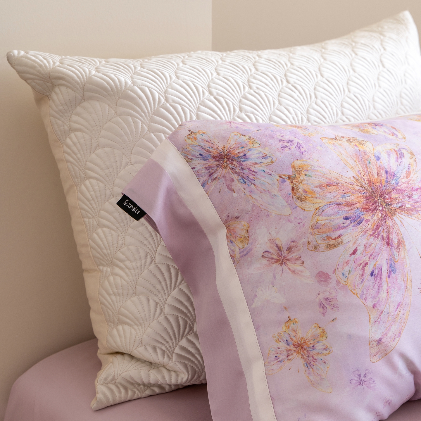 (总)馨蕊家居 2026春夏新款款100s全棉纯棉高精密四件套-米娅,米娅-高级灰,米娅-奶咖,米娅-蔷薇粉