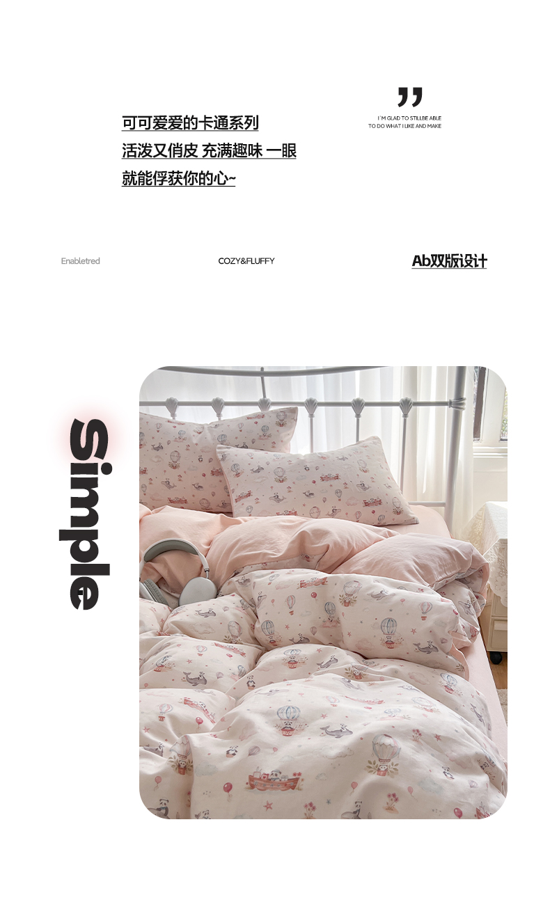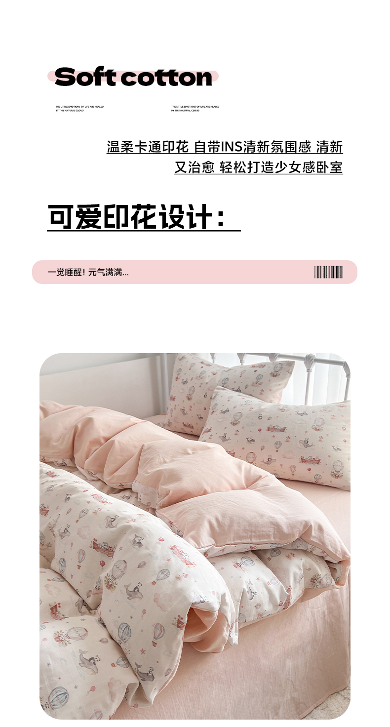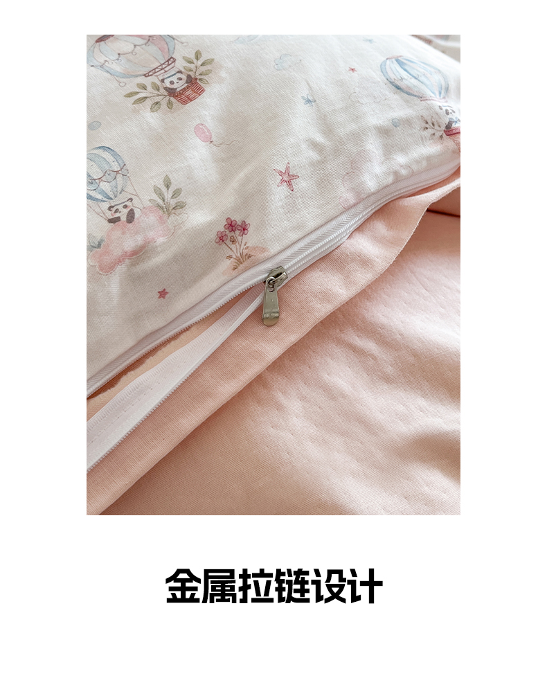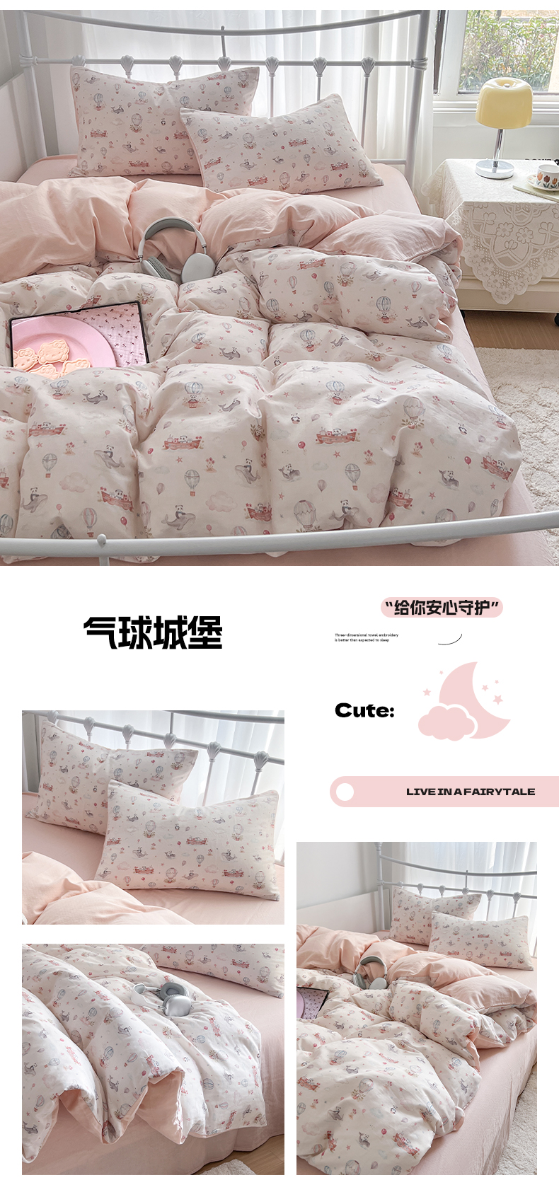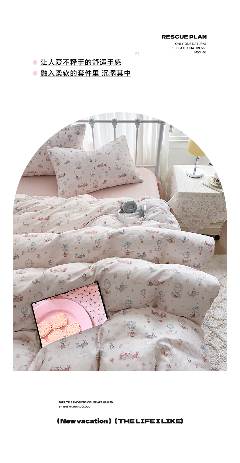 早晨家纺 2026新款INS博主风卡通A类全棉纯棉双层纱四件套 气球城堡