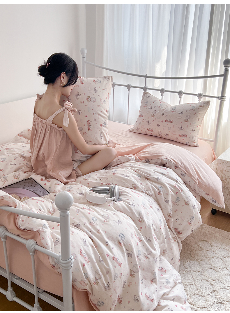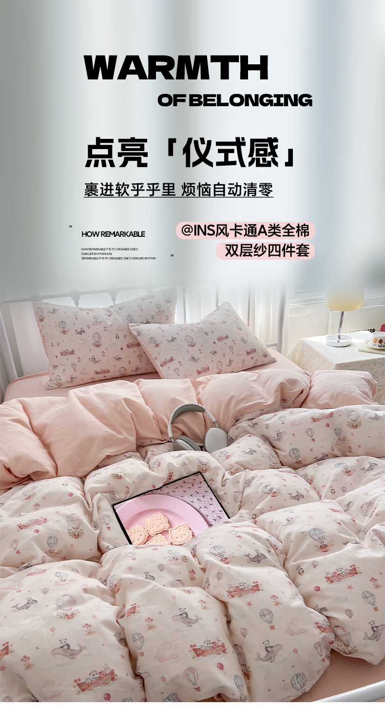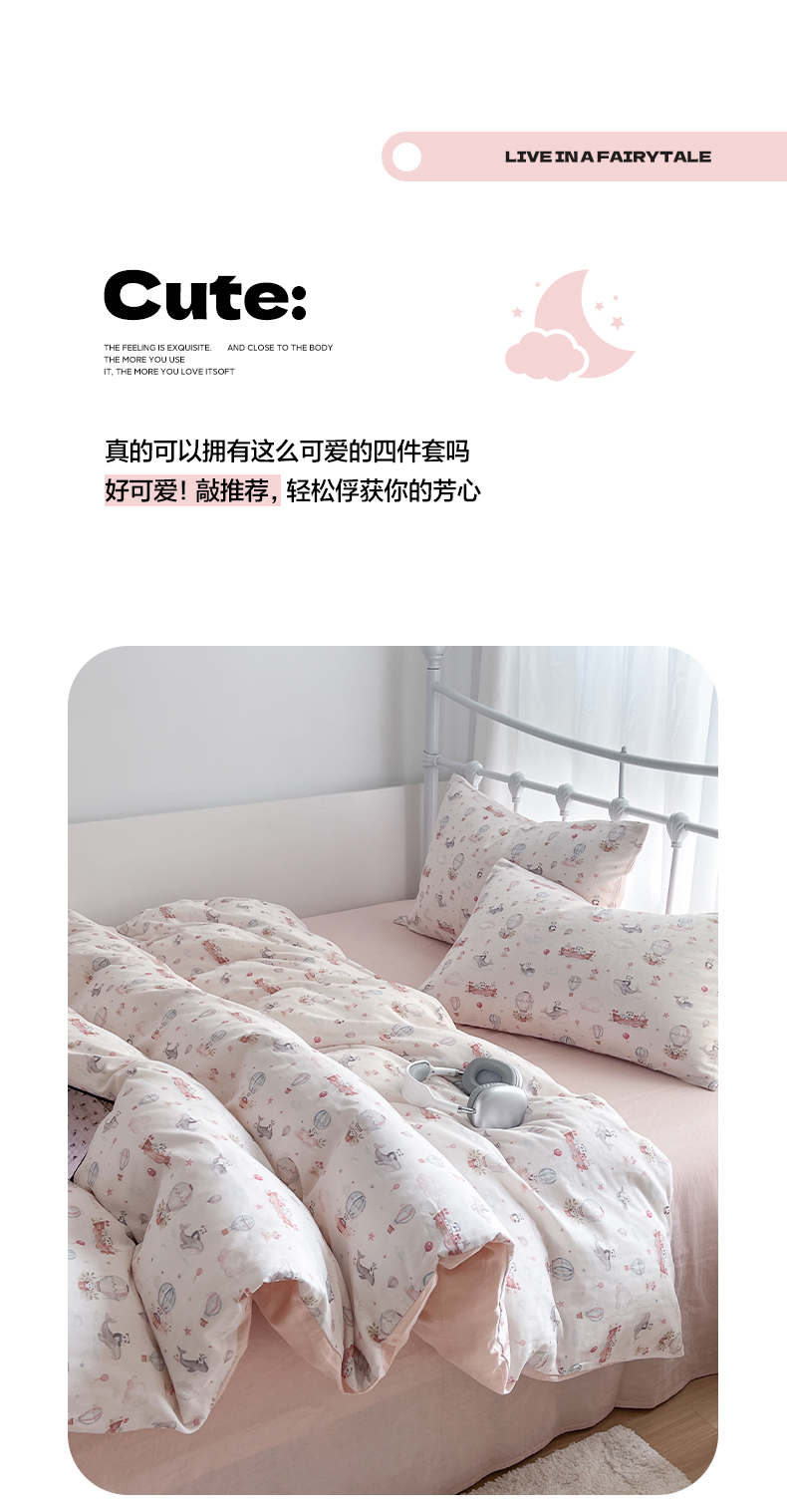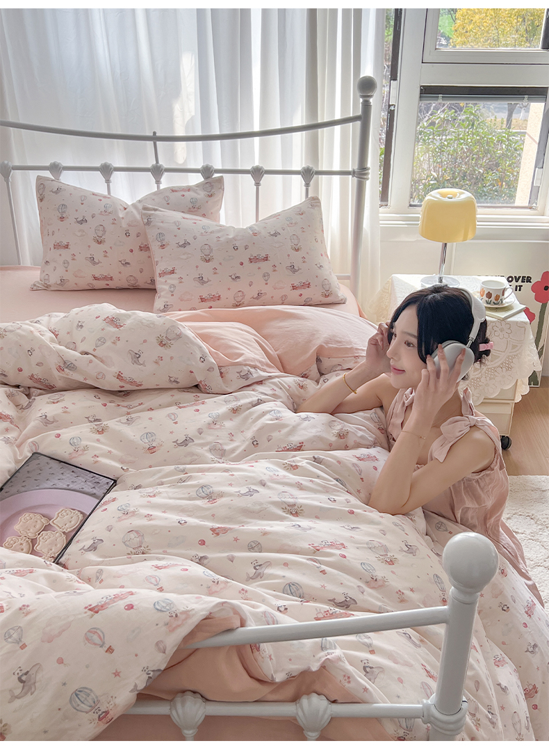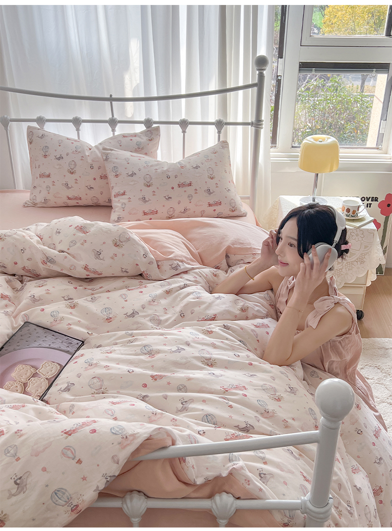 早晨家纺 2026新款INS博主风卡通A类全棉纯棉双层纱四件套 气球城堡