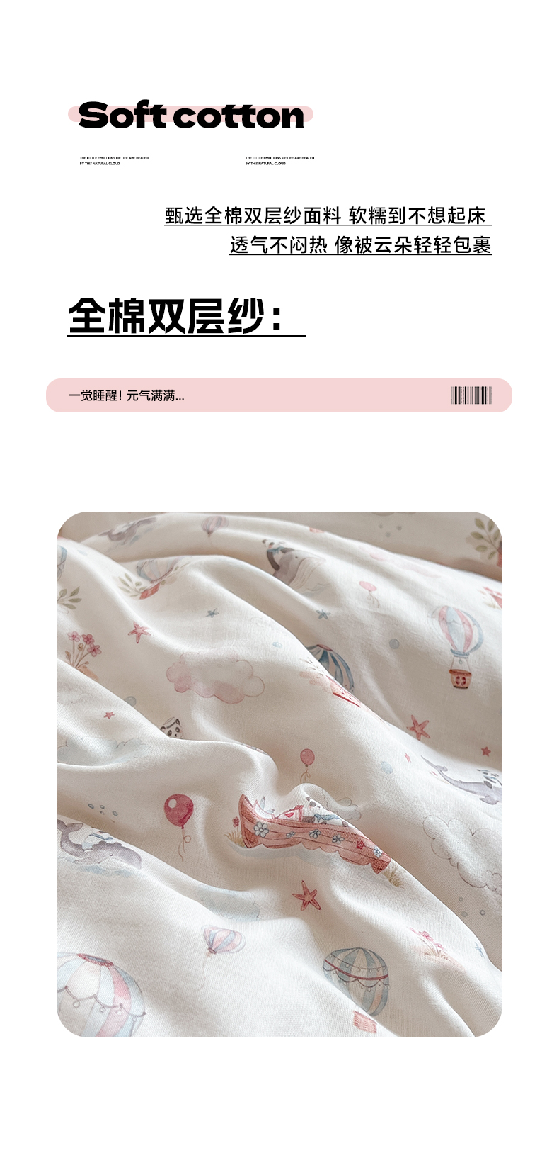 商品名称:早晨家纺 2026新款INS博主风卡通A类全棉纯棉双层纱四件套 气球城堡