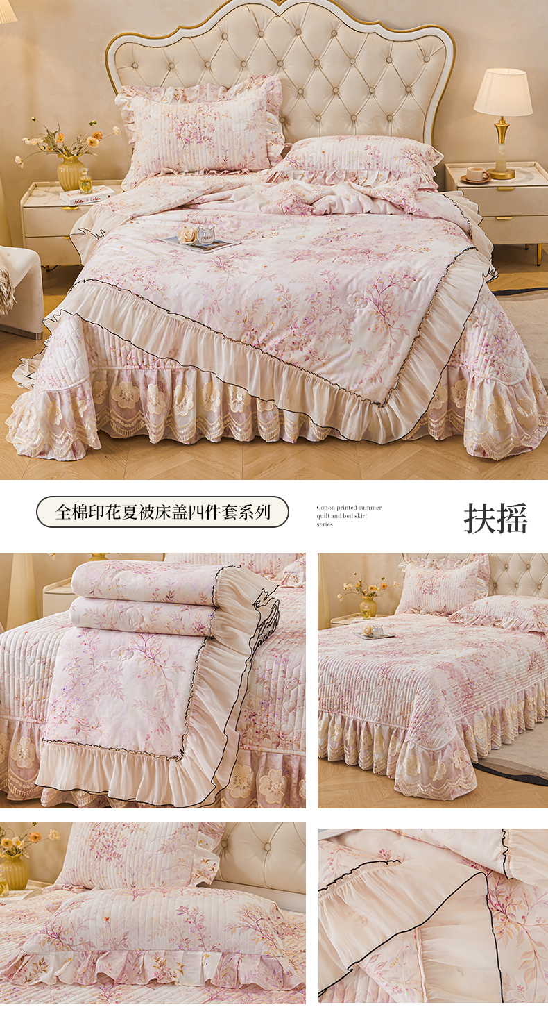 (总)宜凡家纺 2026新款全棉数码印花夏被床裙四件套②号系列,春旭,光之羽 紫,禾暮,澜晚,茜野,恬静