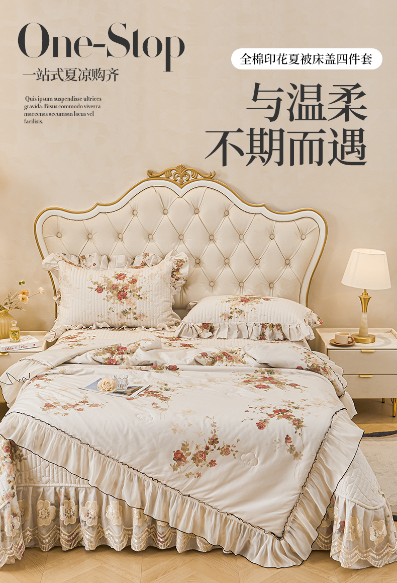 宜凡家纺 2026新款全棉数码印花夏被床盖四件套①号系列 云栀