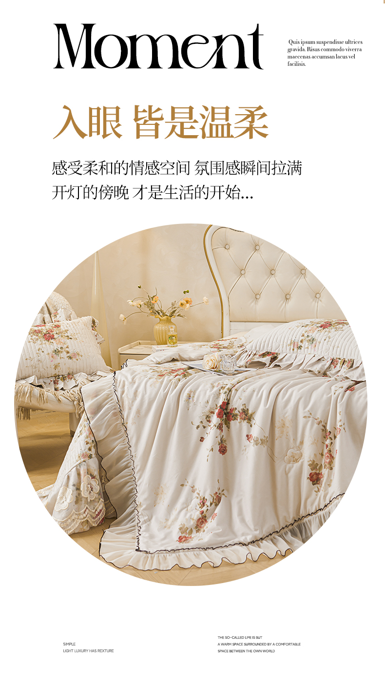 (总)宜凡家纺 2025新款全棉数码印花床裙四件套系列二,繁花似锦,春景熙熙,花间密语,花间柔光,满芯花溪,迷离夜色,婉如初见,雪域森林