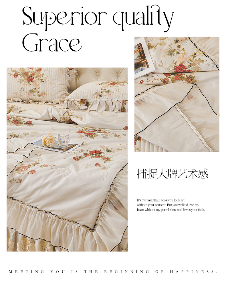 (总)宜凡家纺 2025新款全棉数码印花床裙四件套系列一,静若幽兰,浮云织梦,梦幻花园,陌上花开