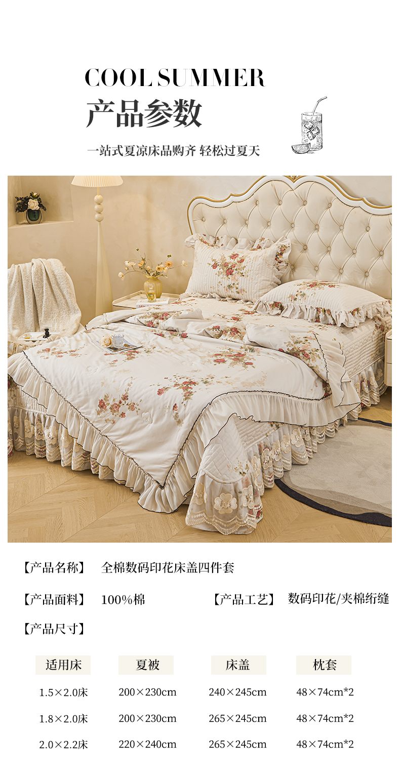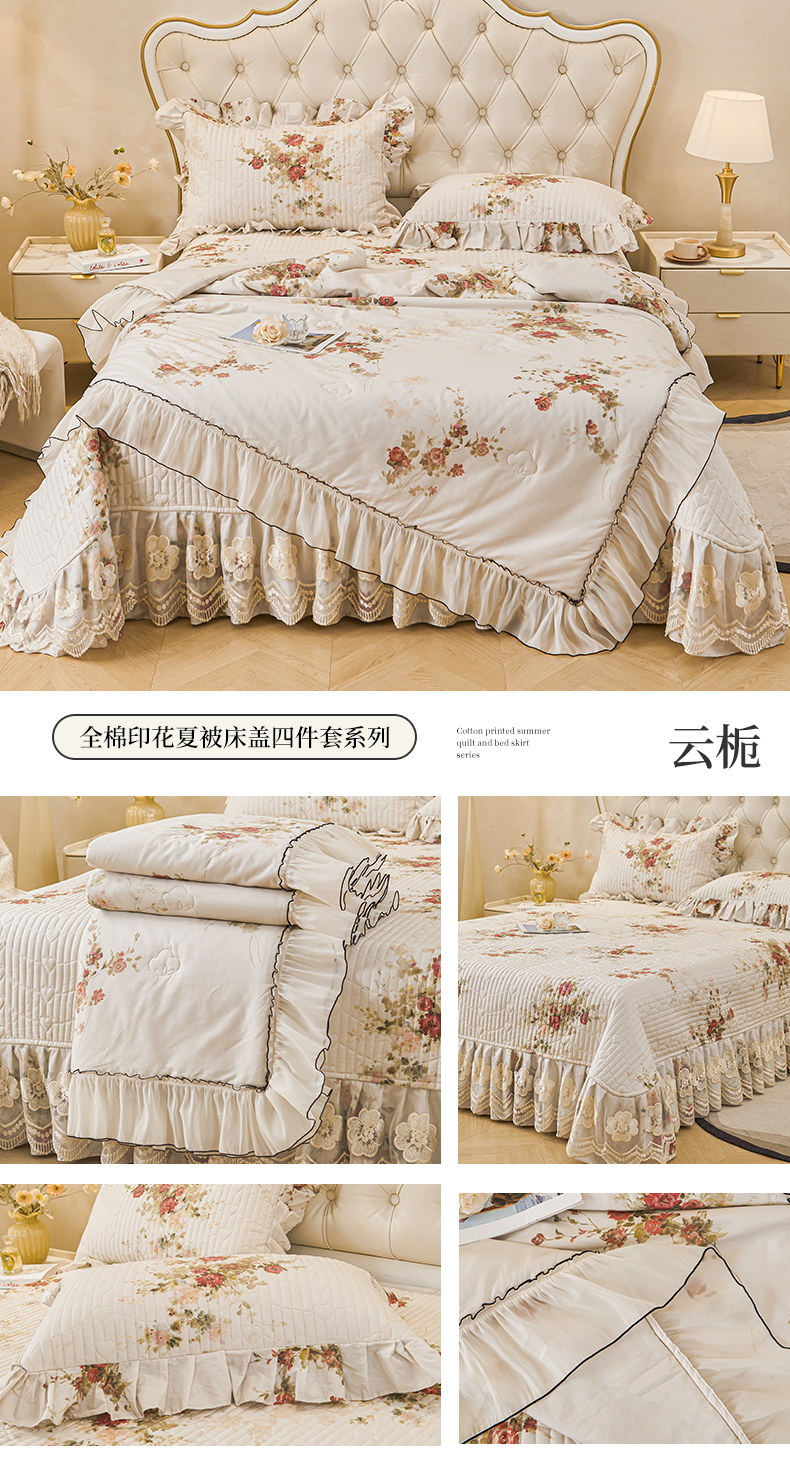 商品名称:宜凡家纺 2026新款全棉数码印花夏被床盖四件套①号系列 云栀