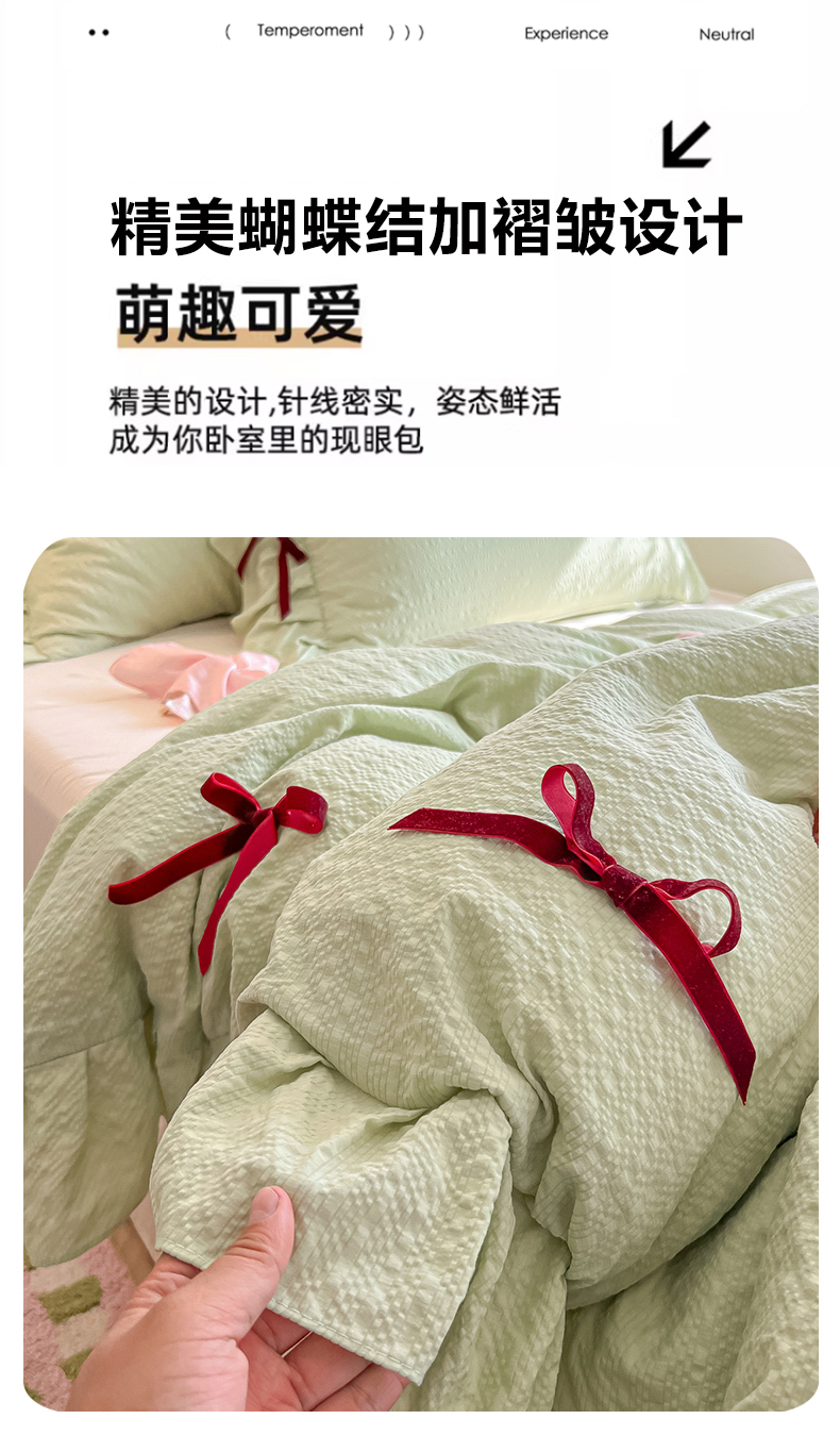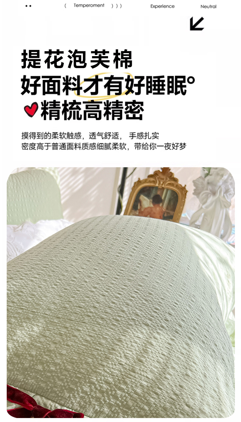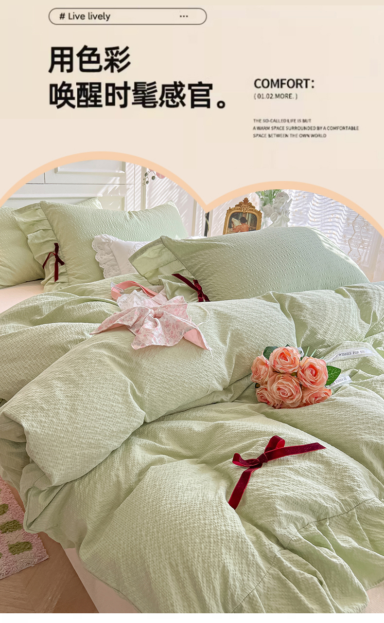 当前位置: 91家纺网 > 商品网购 > 床品套件 > 四件套 > 其它四件套 > 瑞禾家纺(原阿亮) 2026春夏新款提花泡芙棉花边蝴蝶结床单床笠四件套-甜心公主 甜心公主-薄荷绿
