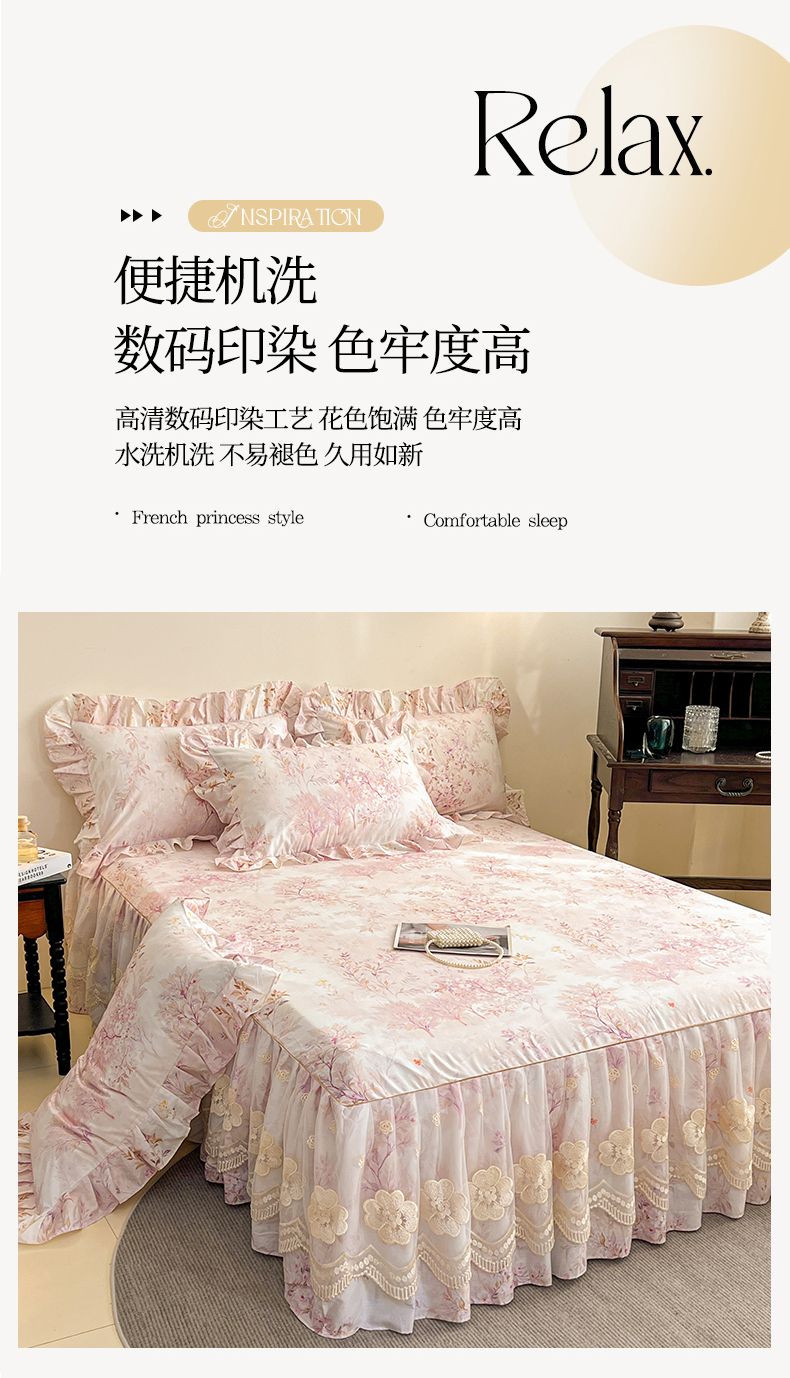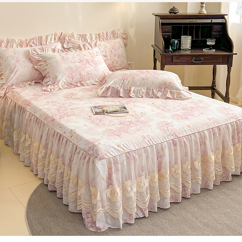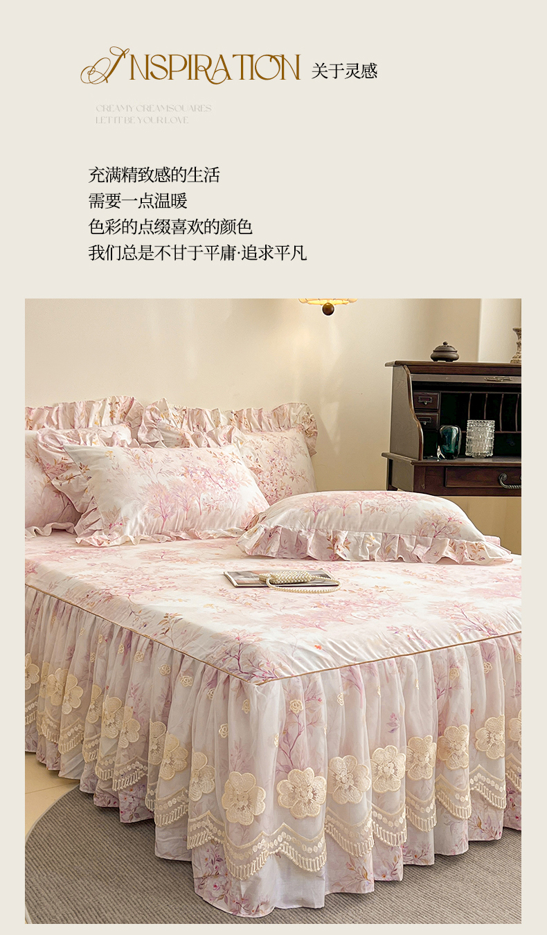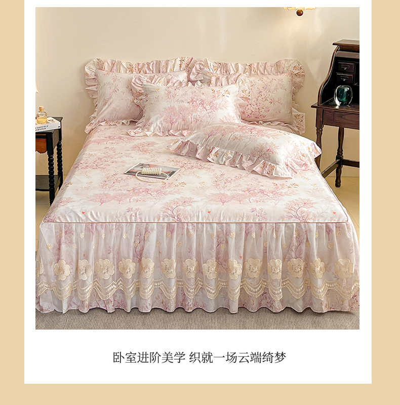 (总)宜凡家纺 2026新款全棉数码印花单层床裙三四件套①号系列四件套,扶摇,光之羽 粉,香雪海,云卷,云栀