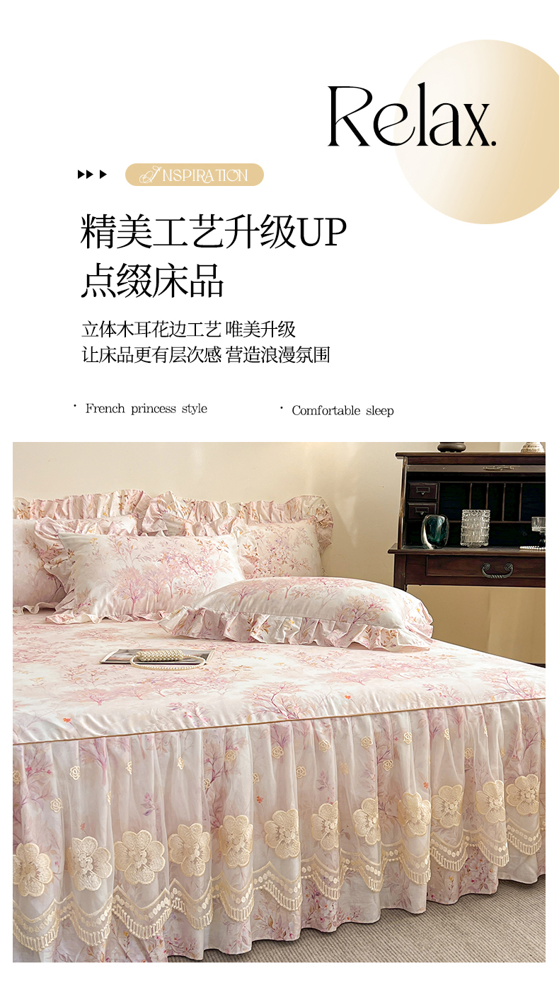 (总)宜凡家纺 2025新款全棉数码印花床裙四件套系列一,静若幽兰,浮云织梦,梦幻花园,陌上花开