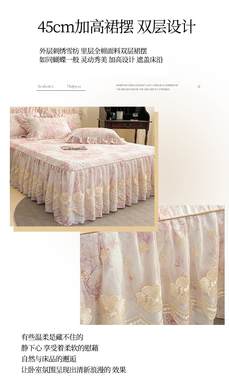 (总)宜凡家纺 2025新款全棉数码印花床裙三件套系列一,静若幽兰,浮云织梦,梦幻花园,陌上花开