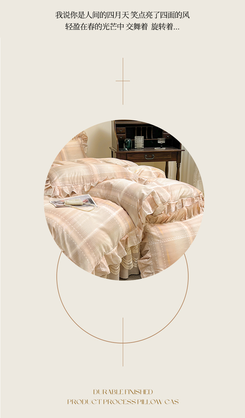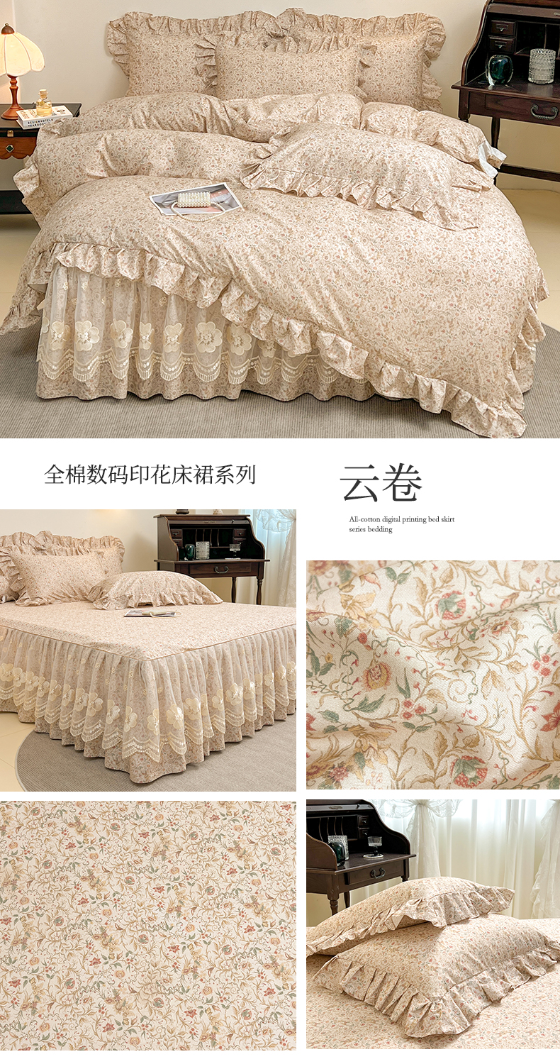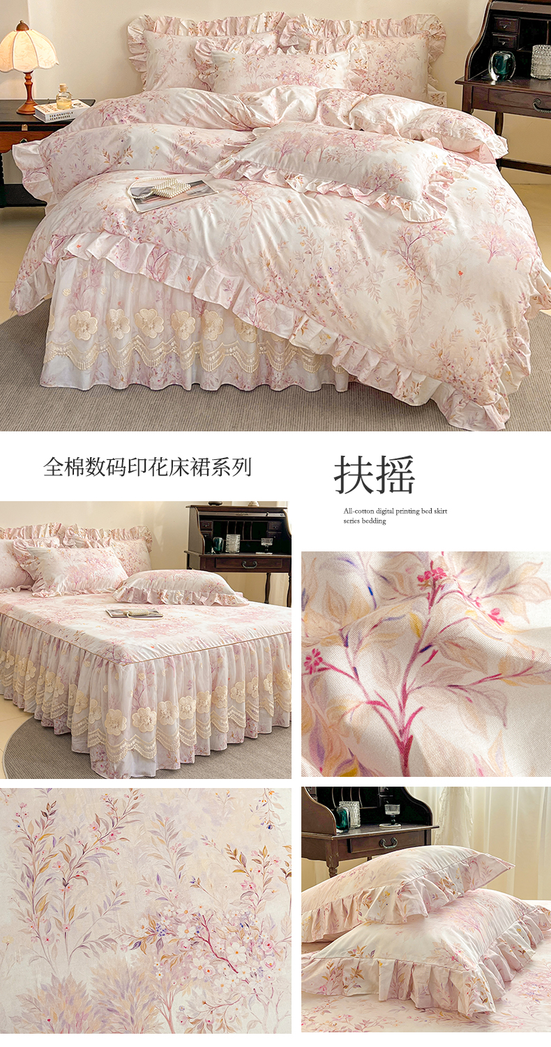 当前位置: 91家纺网 > 商品网购 > 床品套件 > 四件套 > 全棉普通四件套 > 宜凡家纺 2026新款全棉数码印花单层床裙三四件套①号系列四件套 光之羽 粉