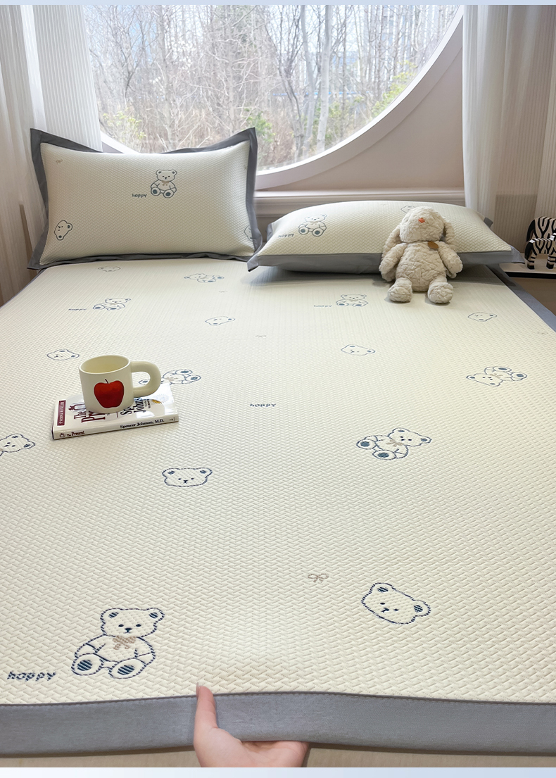 (总)天之澜家纺 2025新款新棉绒幸运熊刺绣夹棉床褥,幸运熊棕,幸运熊粉,幸运熊灰,幸运熊兰,幸运熊绿