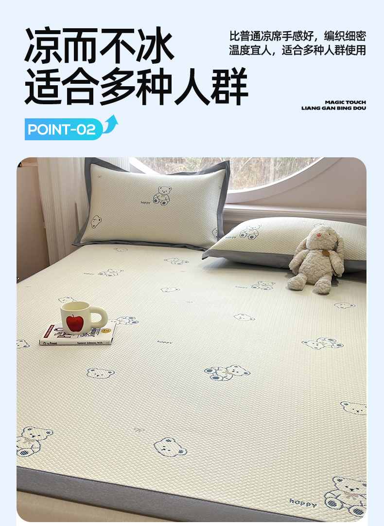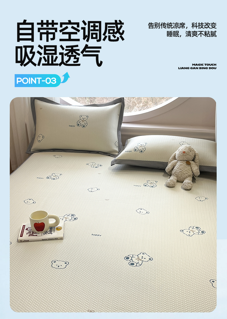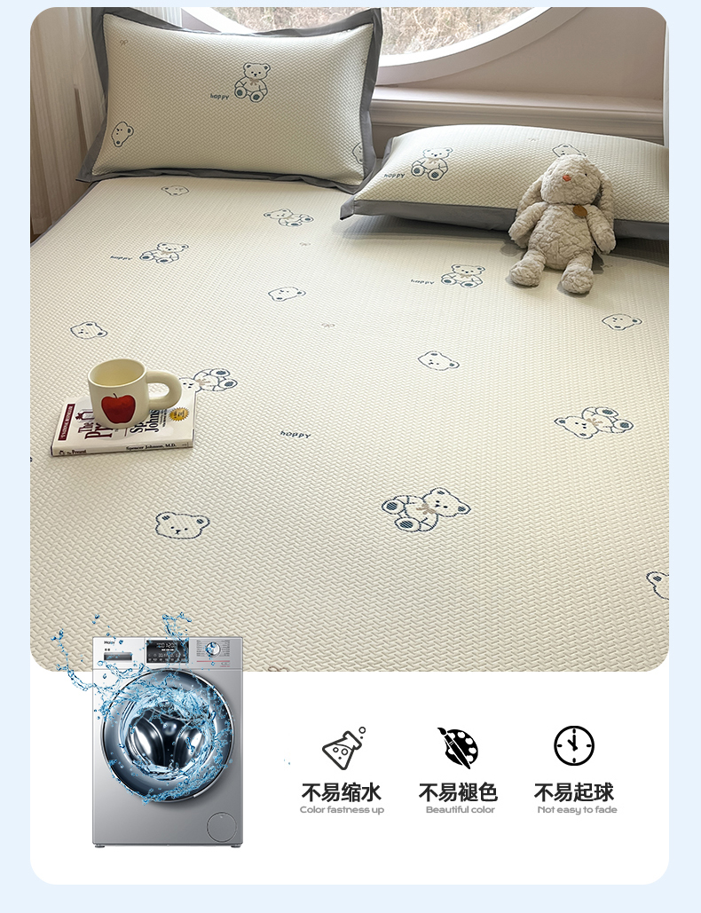 商品名称:天之澜家纺 2026新款PE凉豆豆凉席小红书热卖款A类冰豆豆凉席三件套可水洗豆豆凉席-床席款 熊宝宝