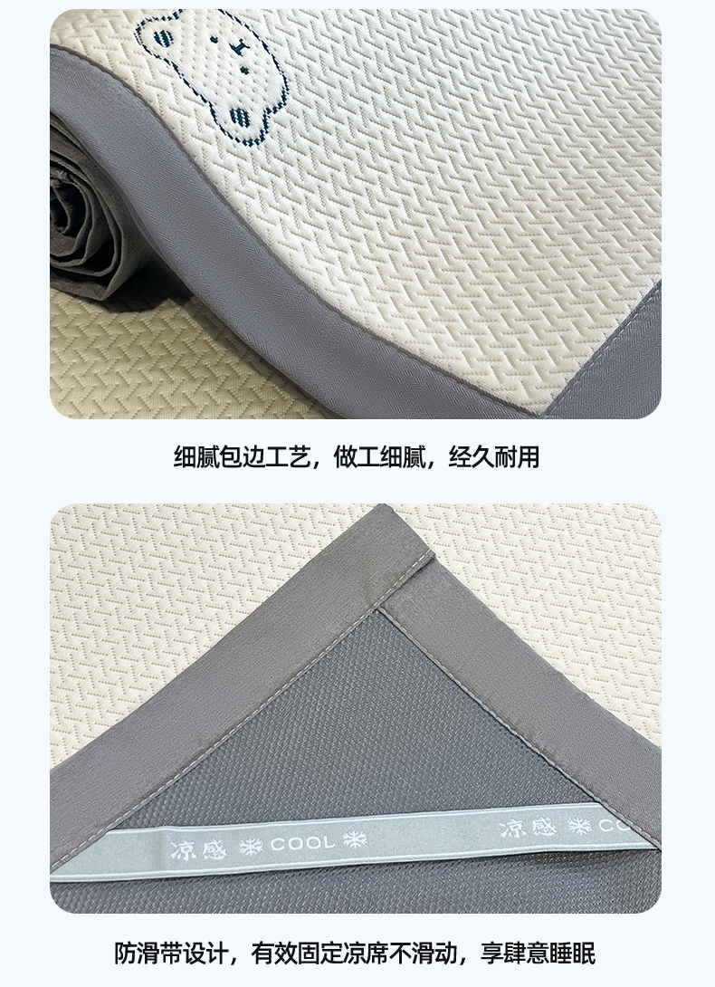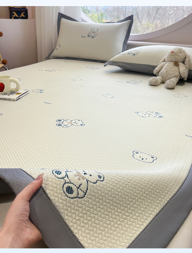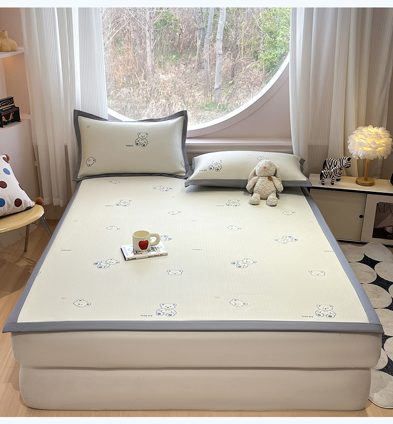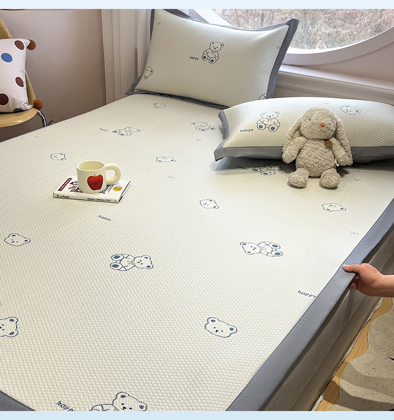 天之澜家纺 2026新款PE凉豆豆凉席小红书热卖款A类冰豆豆凉席三件套可水洗豆豆凉席-床席款 熊宝宝