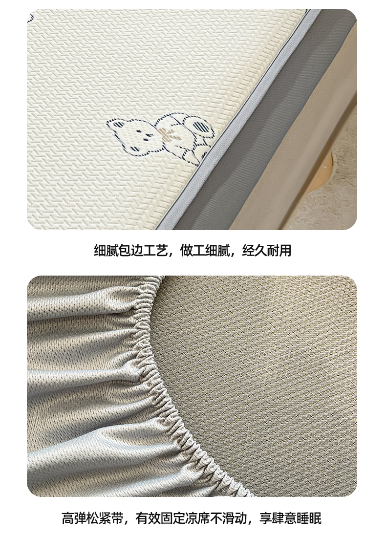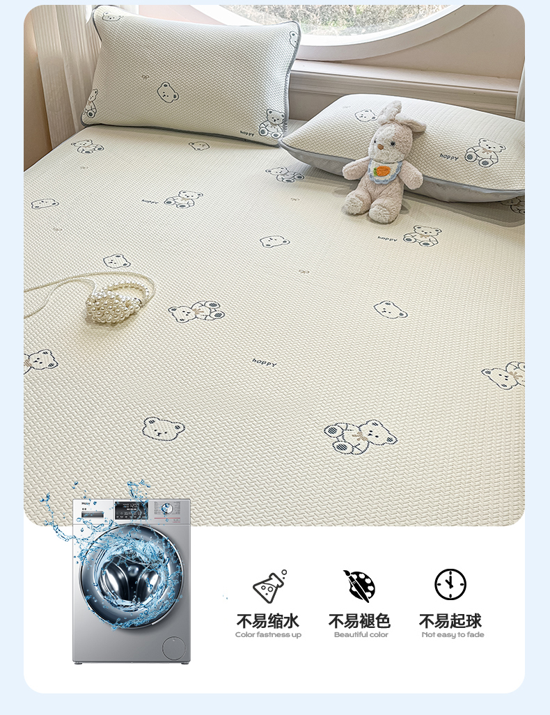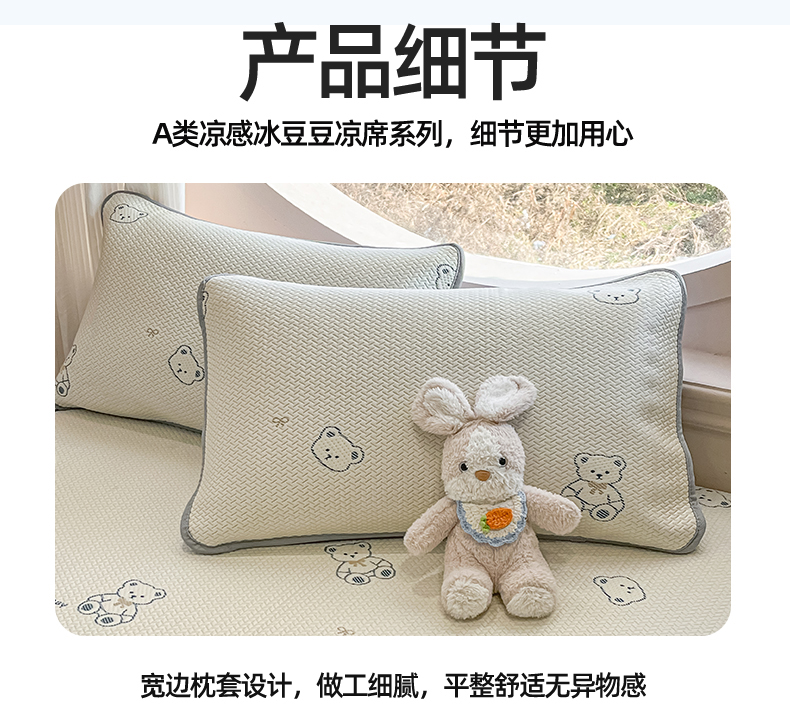 商品名称:天之澜家纺 2026新款PE凉豆豆凉席小红书热卖款A类冰豆豆凉席三件套可水洗豆豆凉席-床笠款 熊宝宝