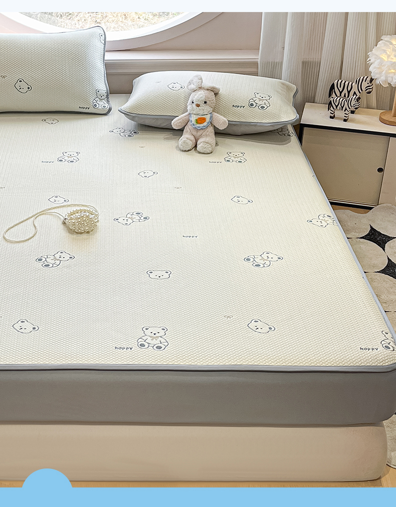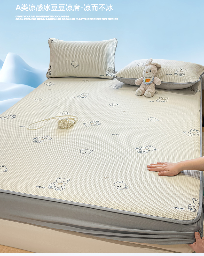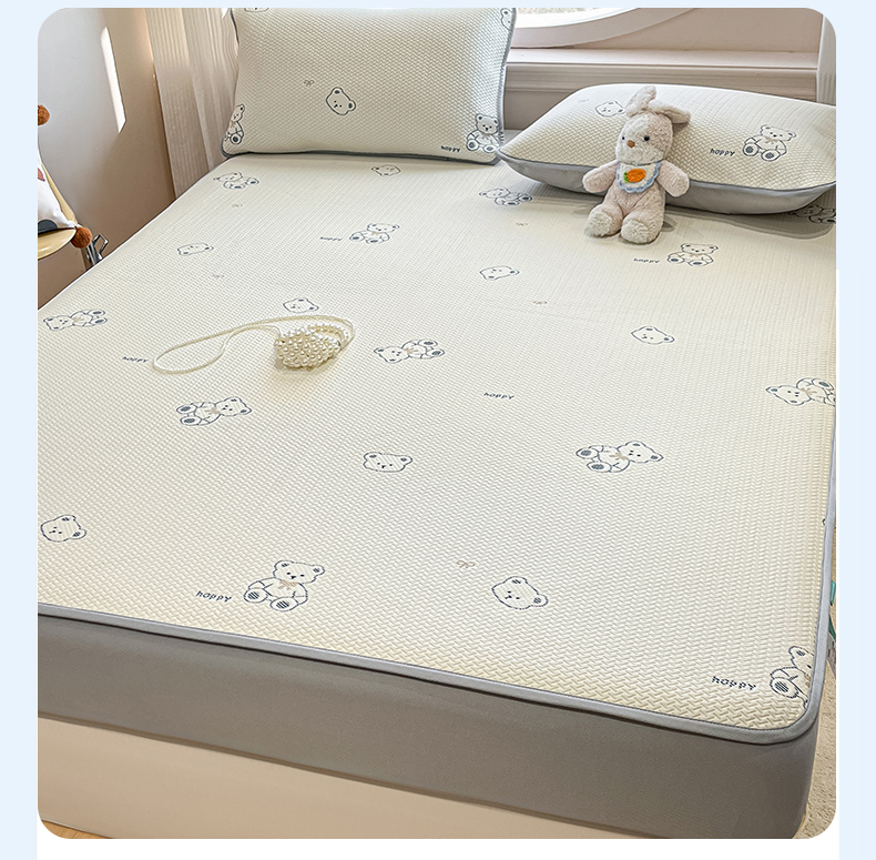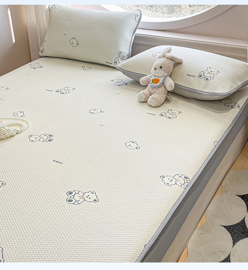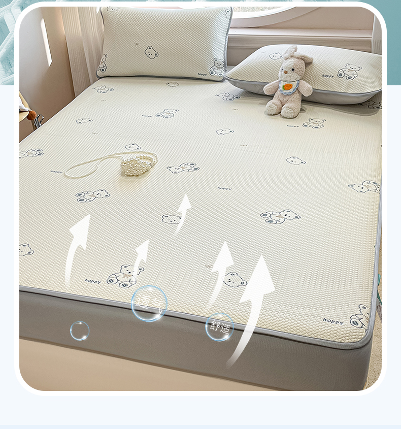 天之澜家纺 2026新款PE凉豆豆凉席小红书热卖款A类冰豆豆凉席三件套可水洗豆豆凉席-床笠款 熊宝宝
