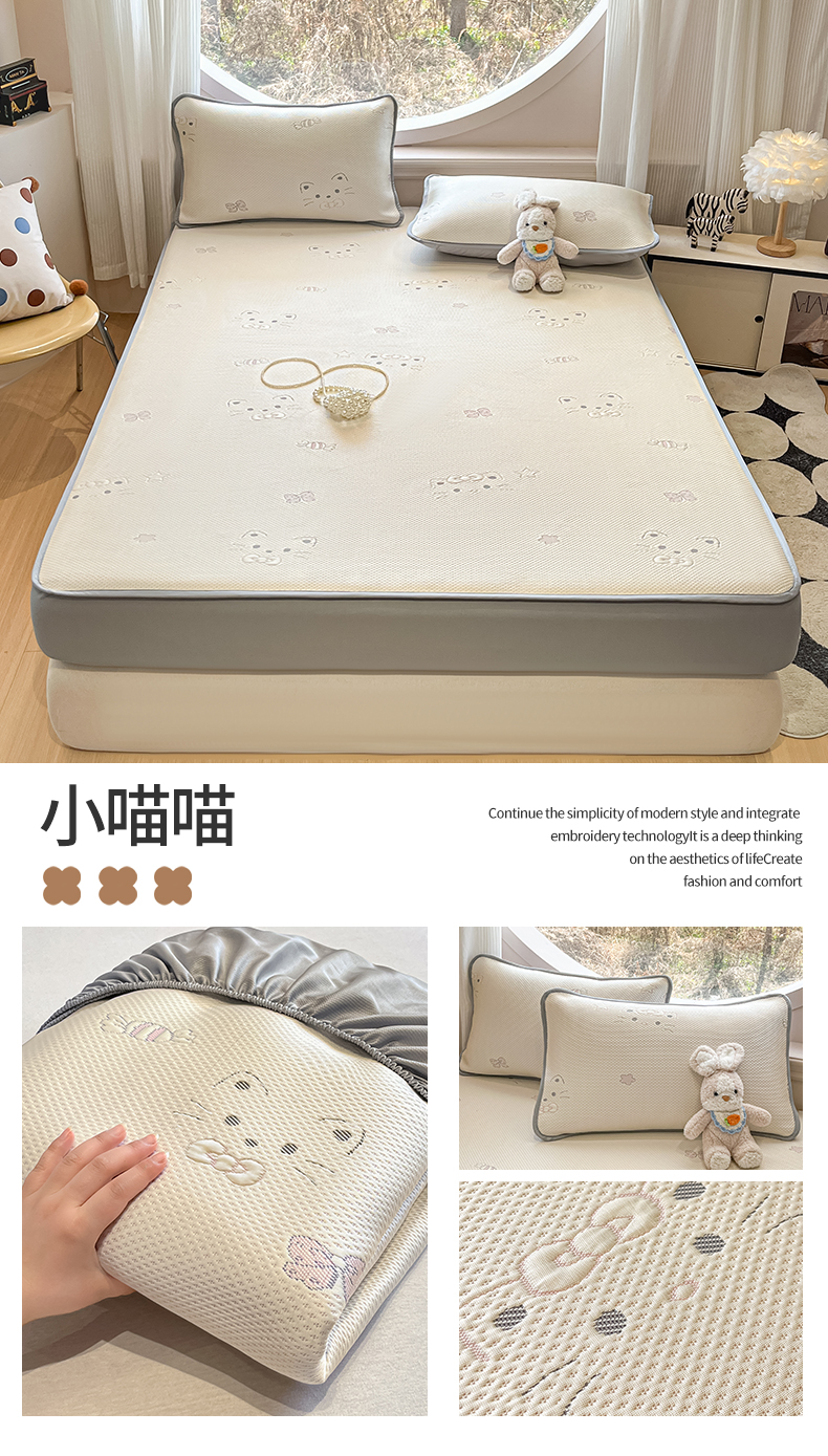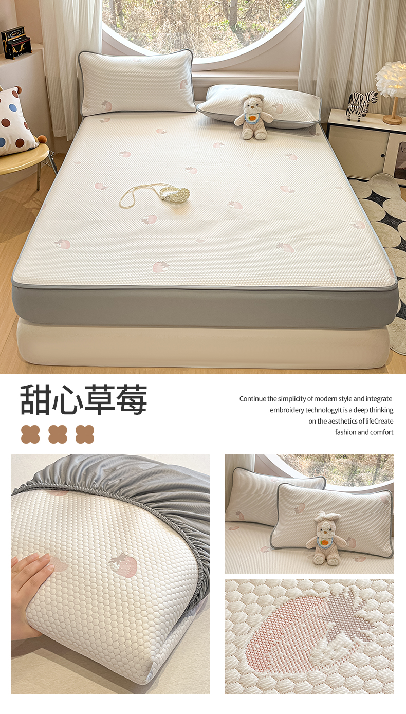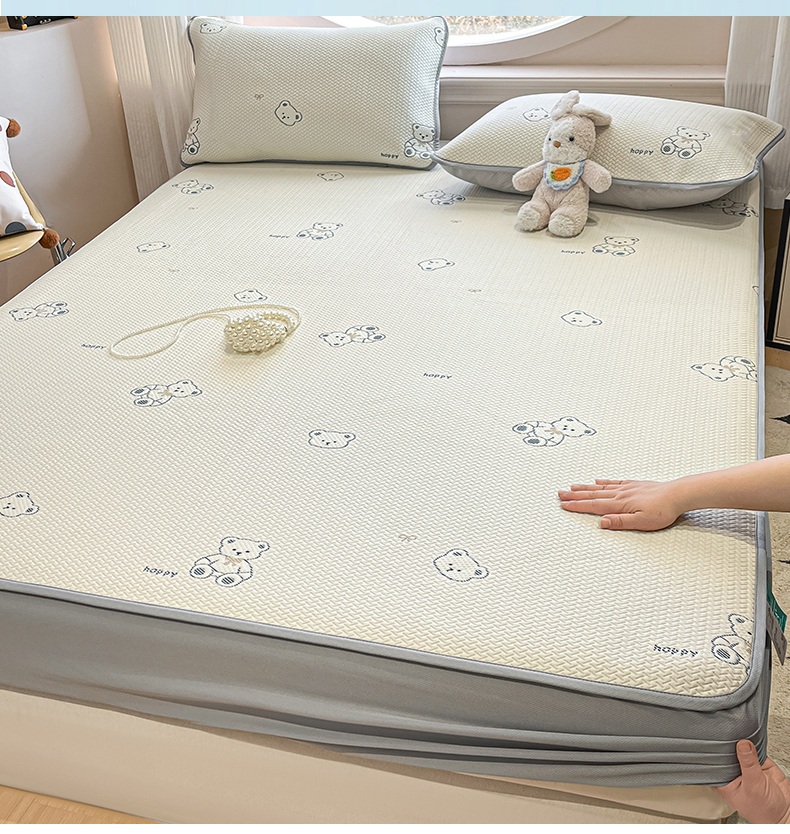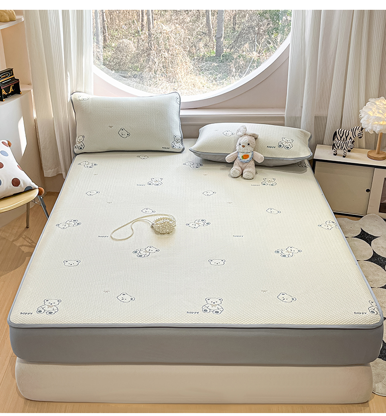 天之澜家纺 2026新款PE凉豆豆凉席小红书热卖款A类冰豆豆凉席三件套可水洗豆豆凉席-床笠款 熊宝宝
