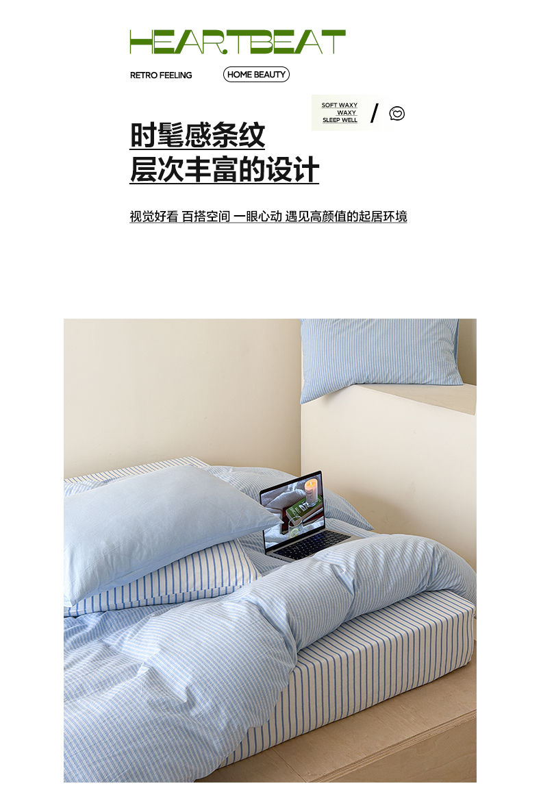 商品名称:(总)玖弘家居 2026新款亲肤水洗棉四件套-糖果条(枕套默认混搭)