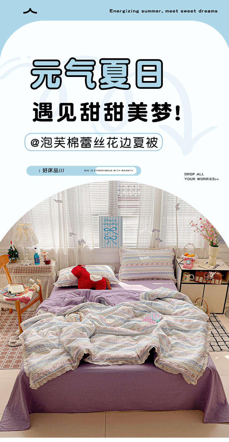 (总)优承佳生活馆 2026新款超柔高克重泡芙纱蝴蝶结全棉花边夏被套件单夏被,爱心条格,暗香疏影,芬芳馥郁,格子蝴蝶结,花清梦,花漾小窝,花屿兔,简夏,满满,曼塔庄园,木马彩虹,七里香,浅陌,蔷薇絮,甜昔花语,童趣乐园,星星木马,摇摇星人,枝蔓,紫萱,棕韵梦境,组合图