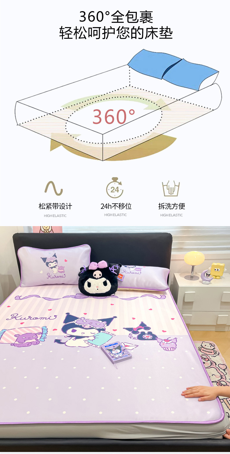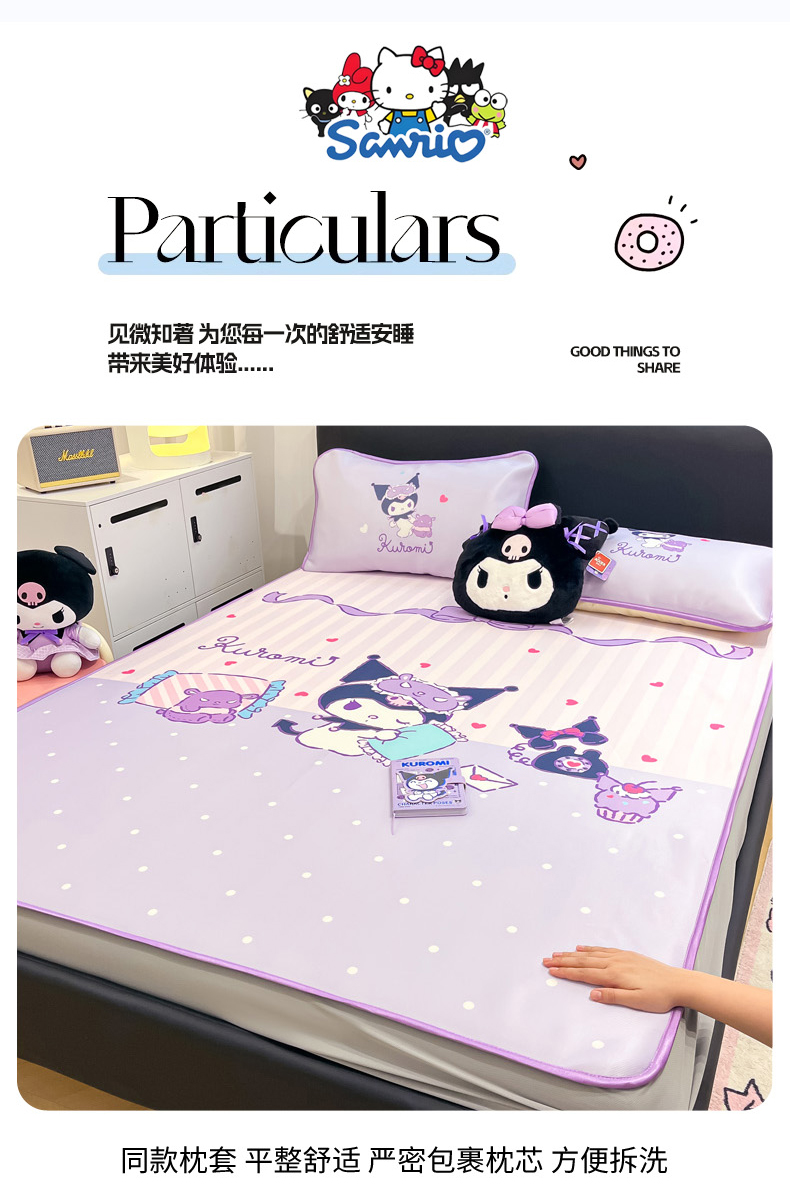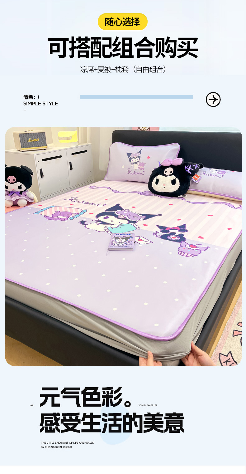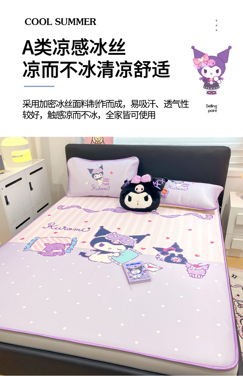 当前位置: 91家纺网 > 商品网购 > 床上用品 > 凉席 > 冰丝席 > 暮思家居 2026新款正版授权A类大版数码印花三丽鸥1200D冰丝凉席可组合仿锦氨夏被 床笠款-甜蜜库洛米