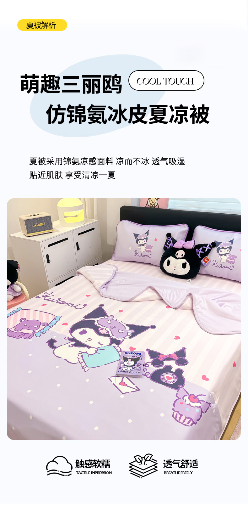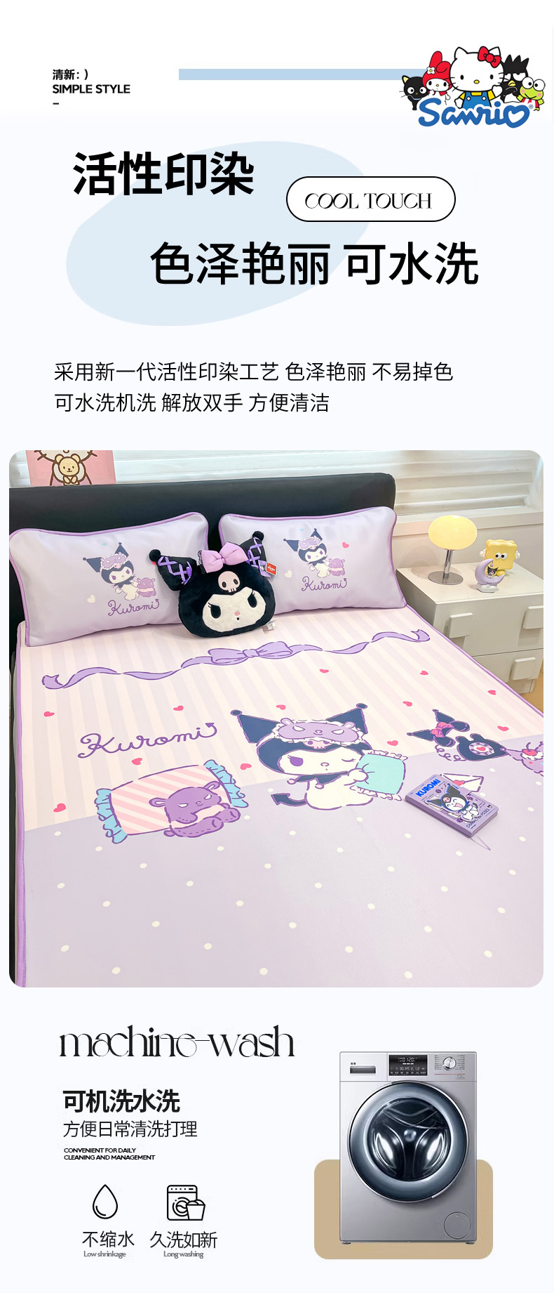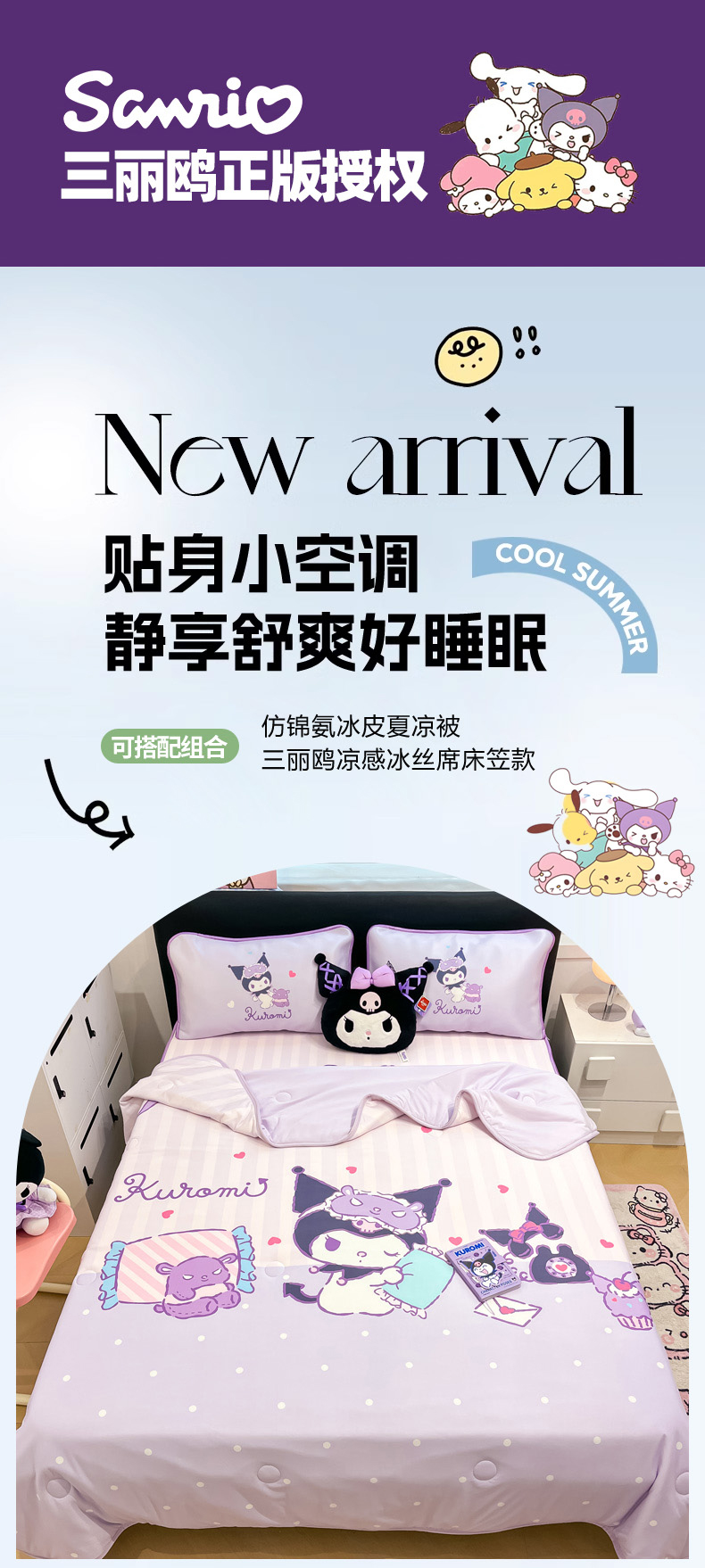 当前位置: 91家纺网 > 商品网购 > 床上用品 > 凉席 > 冰丝席 > 暮思家居 2026新款正版授权A类大版数码印花三丽鸥1200D冰丝凉席可组合仿锦氨夏被 床笠款-甜蜜库洛米