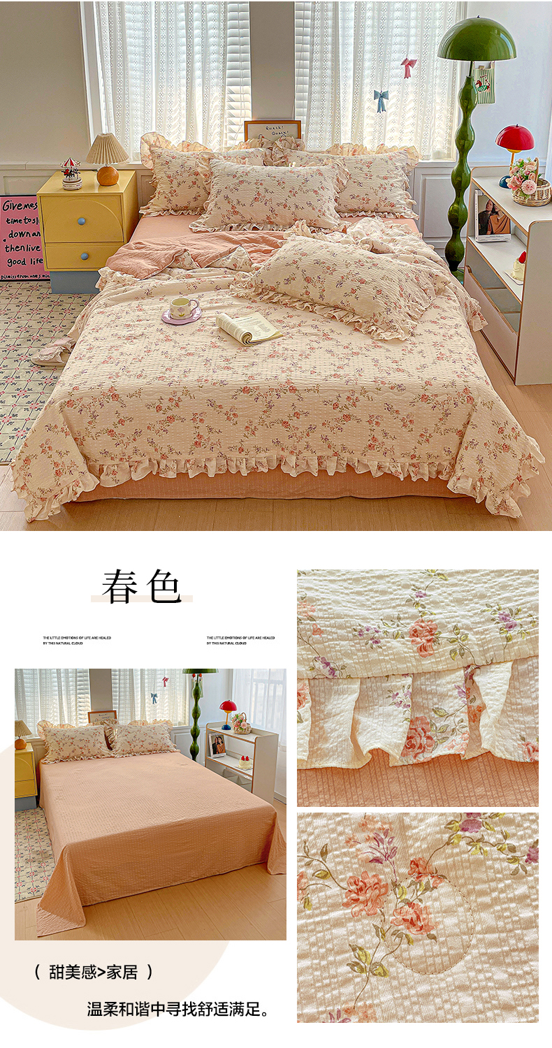 蓝极人 2026新款泡芙棉花边夏被四件套 XB初柠