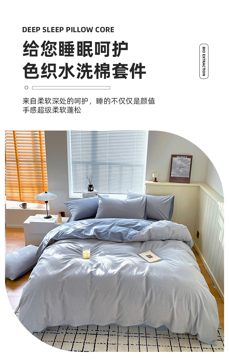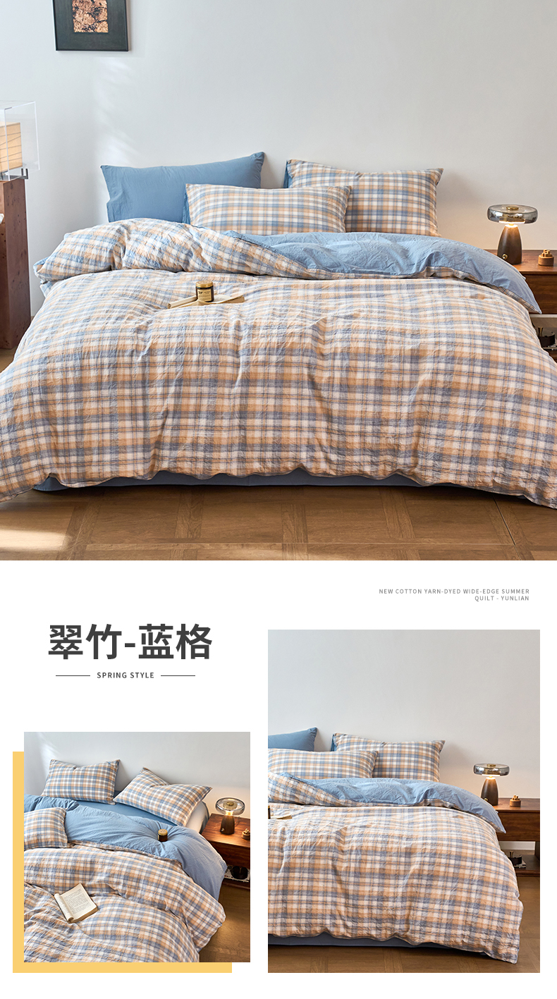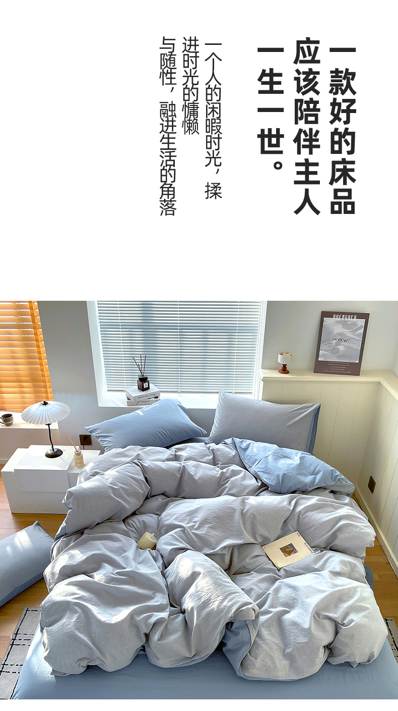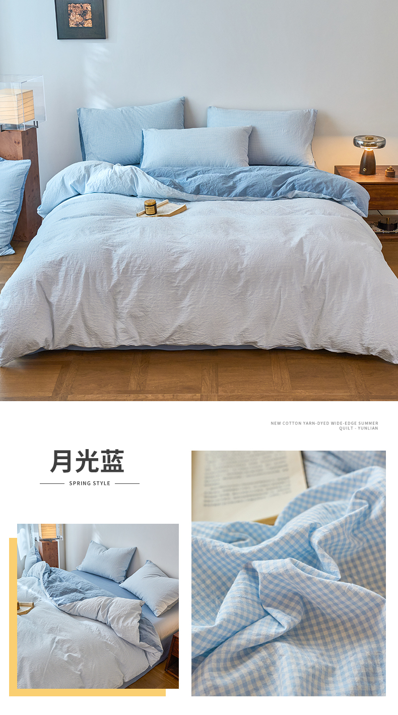 当前位置: 91家纺网 > 商品网购 > 床品套件 > 四件套 > 全棉普通四件套 > 春皖家纺 2026春夏新款全棉纯棉水洗棉四件套 细条蓝