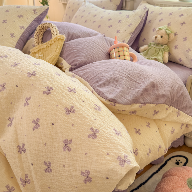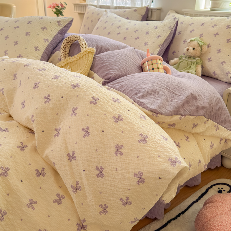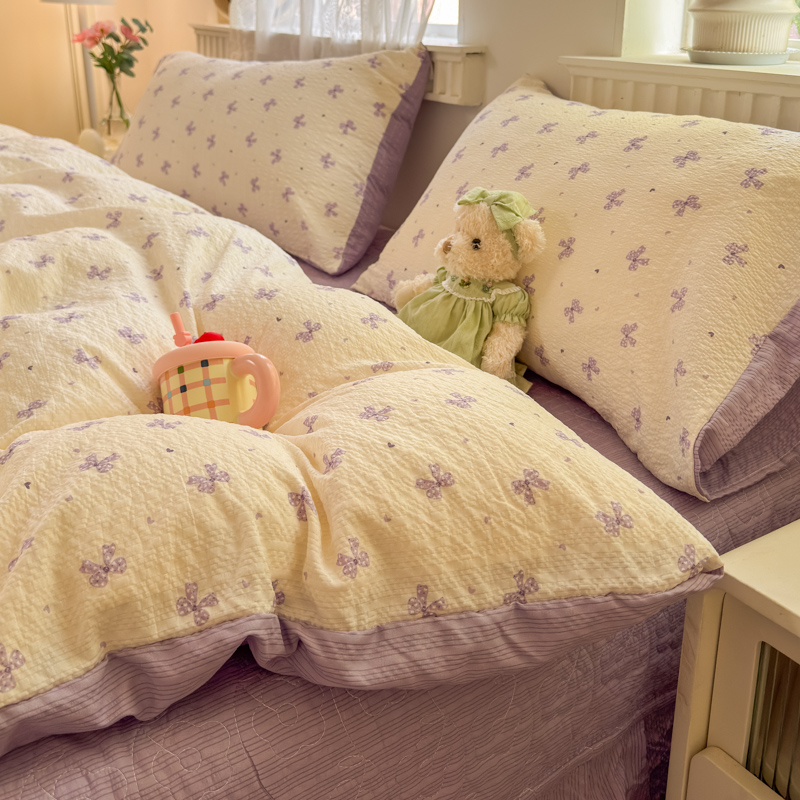 凤杰家纺 2026新款云感双层纱床盖四件套 紫韵蝴蝶结